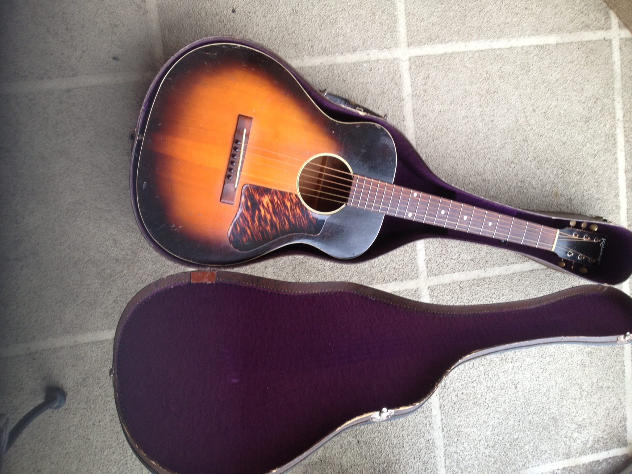 This one has survived in very nice condition. Cool case that’s vintage appropriate for your 12 fret Gibson L body or Kalamazoo KG11.