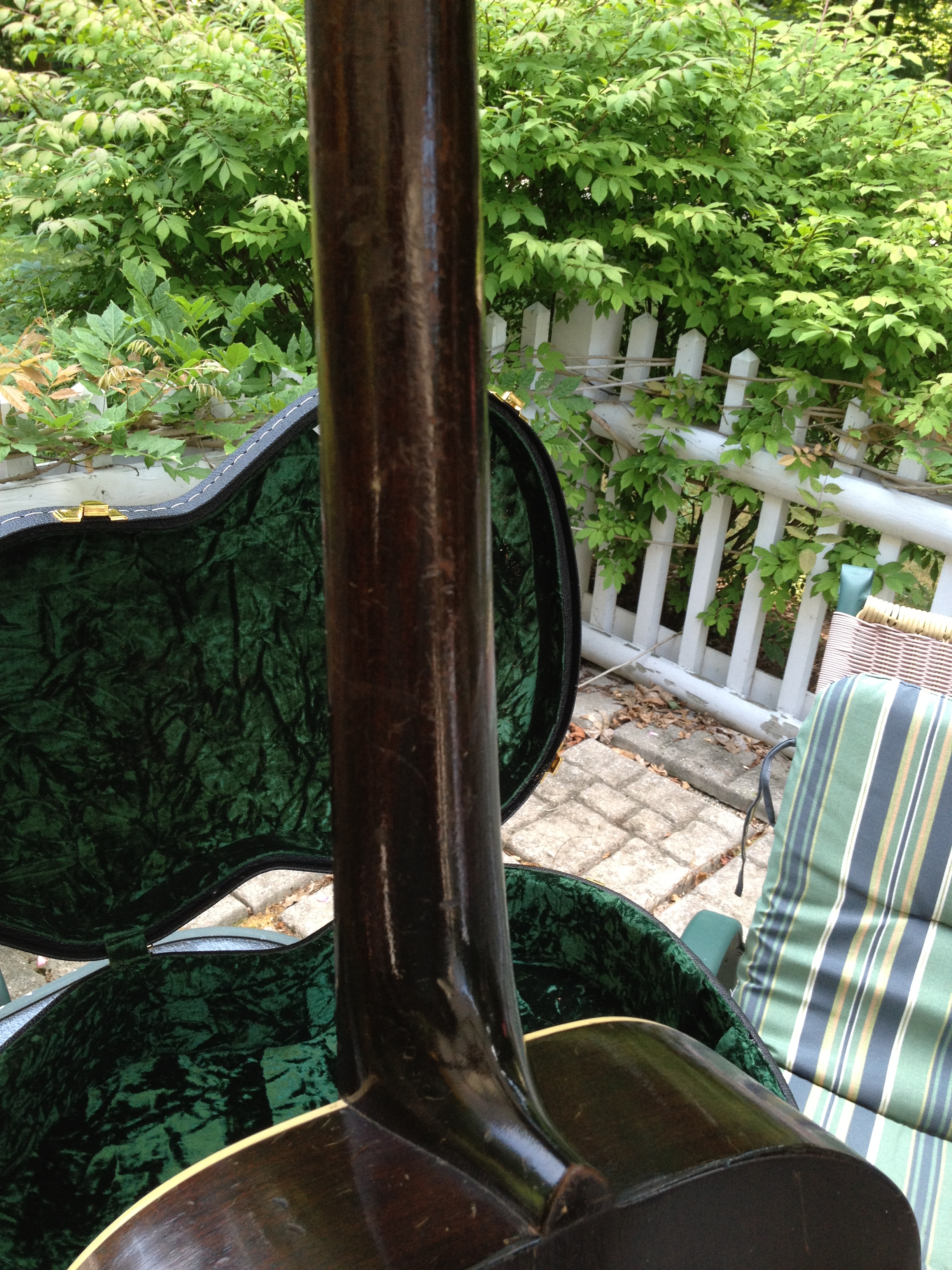 Impeccable neck set by David Hatchard with pro set up and perfect intonation …. 4-3 action and plenty of string break over the new bone saddle with room to lower if you wish.
