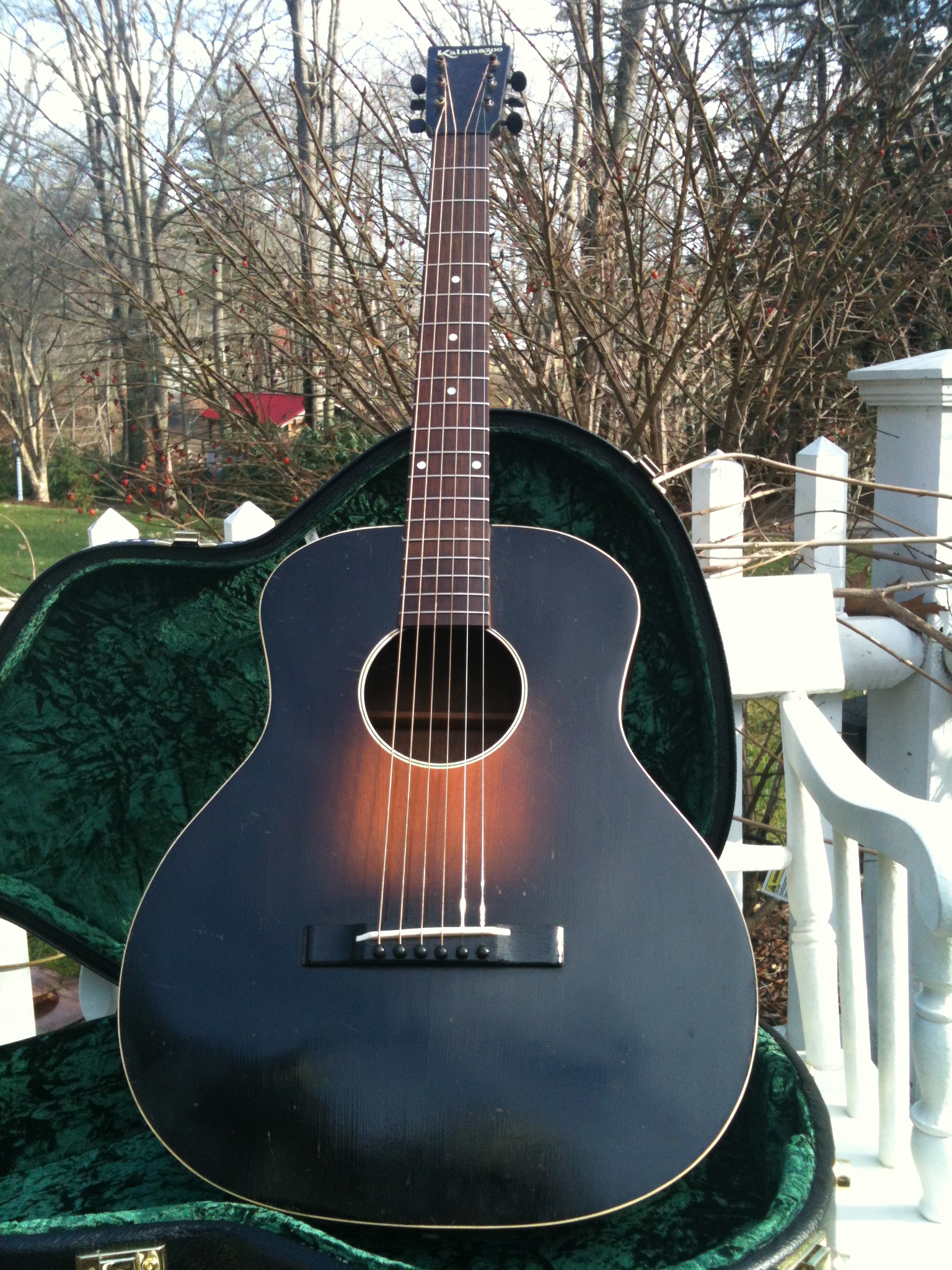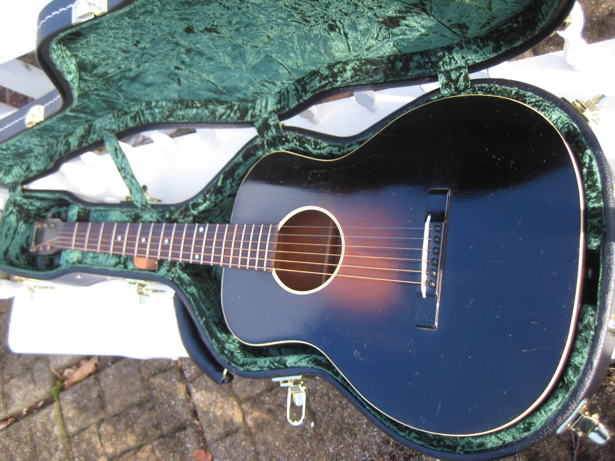 1934 Gibson-Kalamazoo model KG11. All there and all original and such a light finger picker. 2 piece seemingly seamless top with the fine radius. ’33-’34 were the lightest built of the KG11 series. Acknowledged by both players and collectors (and Tommy Emmanuel) as one of the best depression era finger picking guitars ever made!