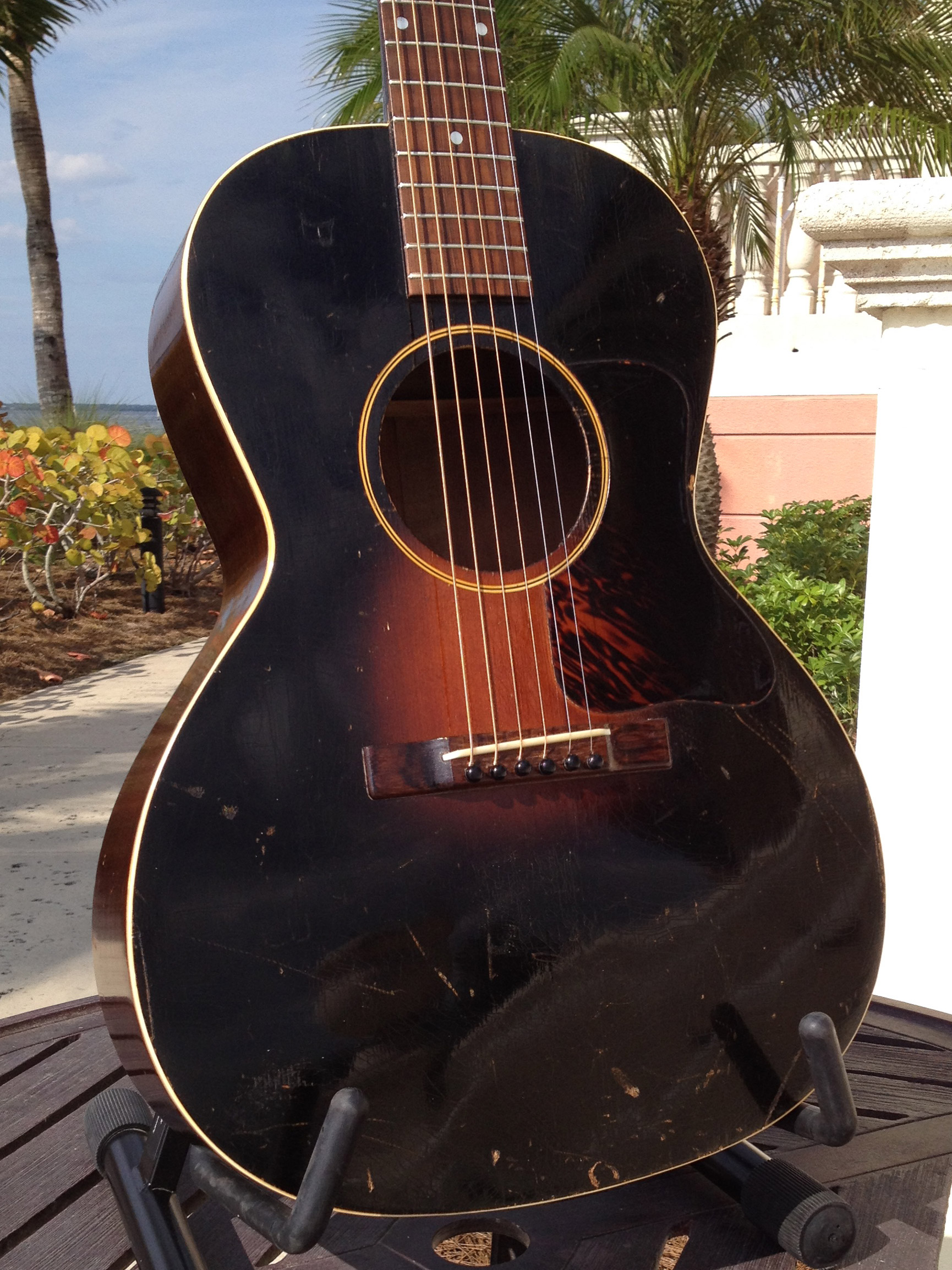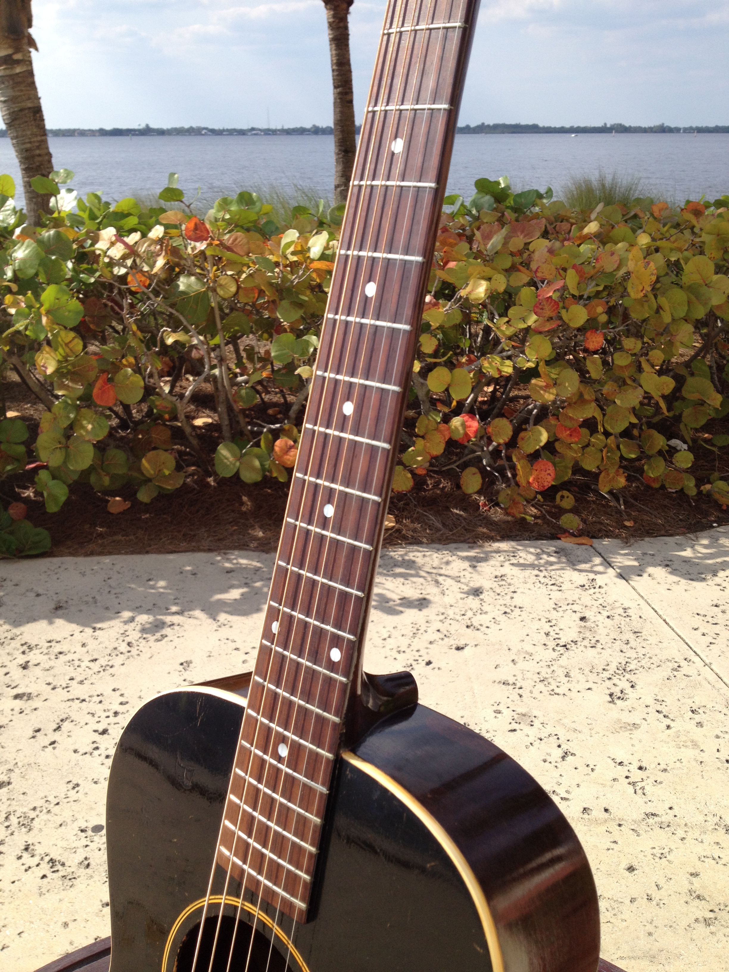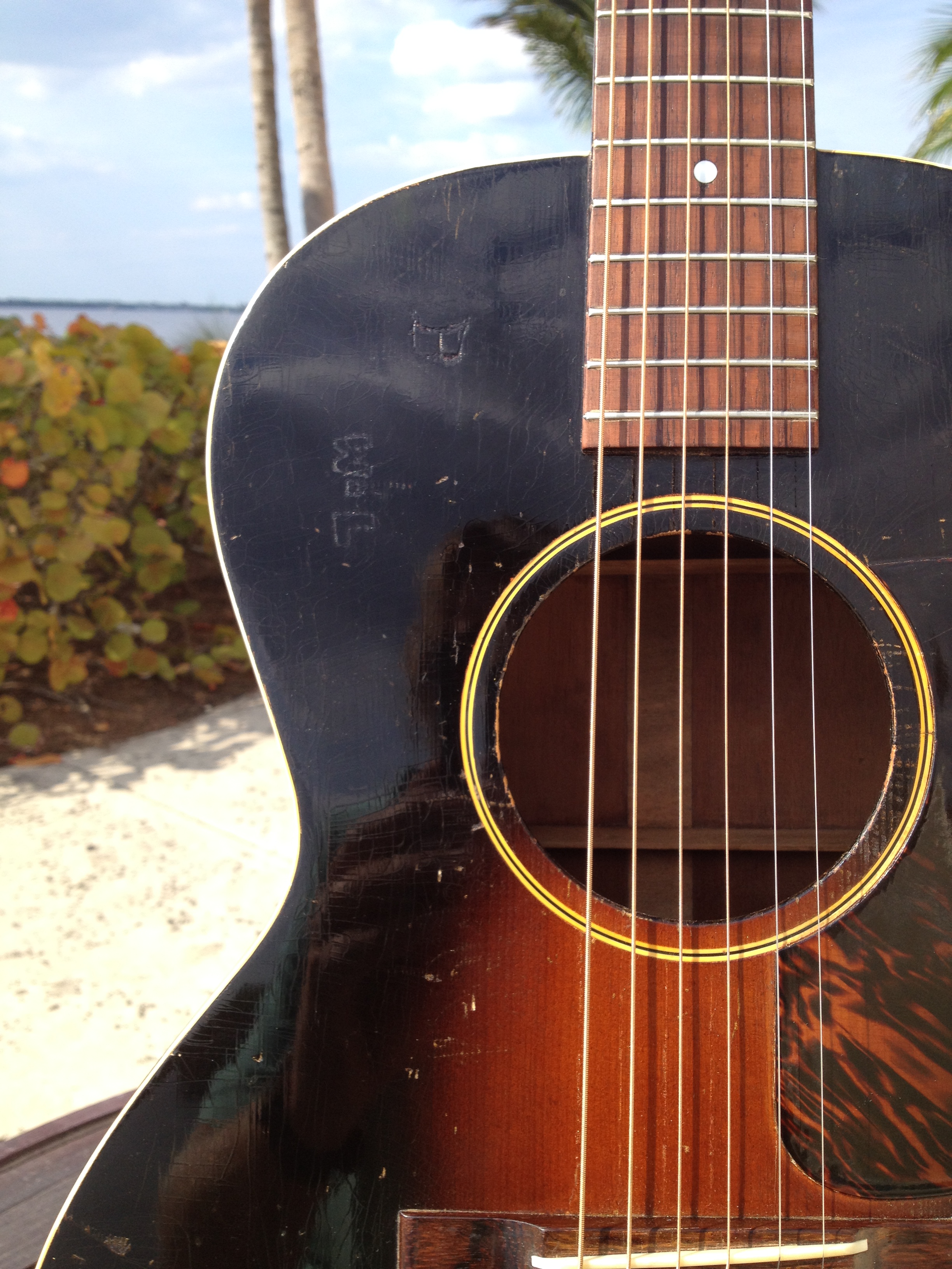 Although the top shows a few scars and initials, the finish is original with no over spray and the guitar is remarkably well-preserved. This 1934 model has all the characteristics we consider most desirable for an L-00, resulting in a brilliant sound. Listen to the YouTube videos to hear what it can do. Fish plays two versions of Little Martha, one finger style and one flat picked, plus many other styles to demonstrate the range of tones available.
