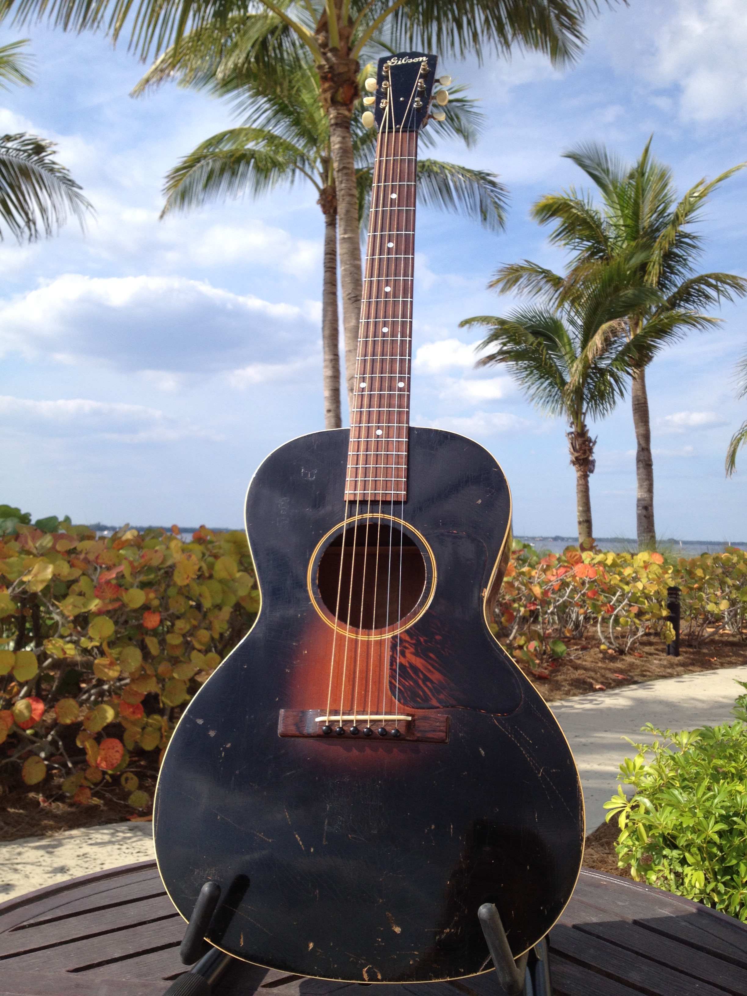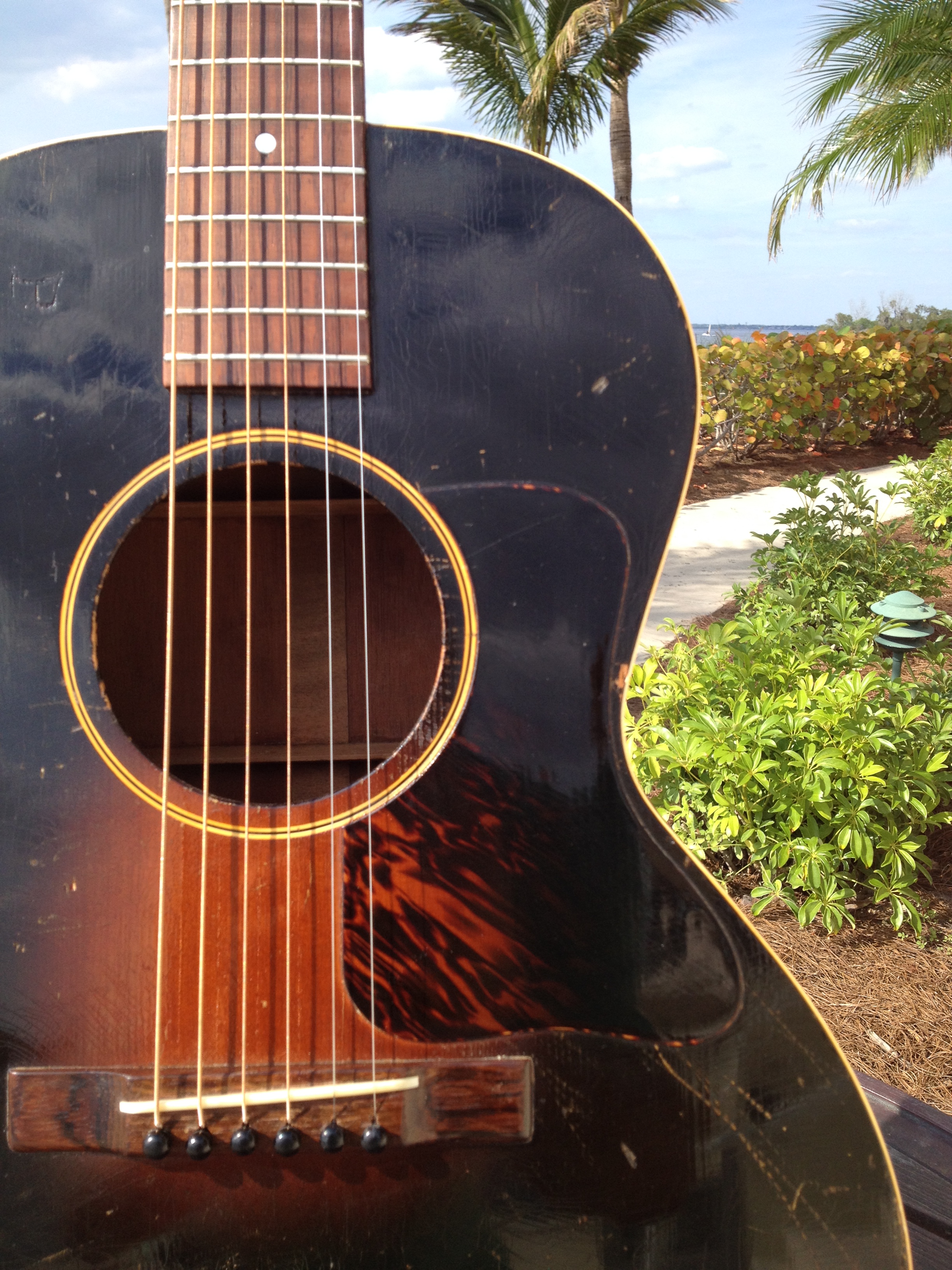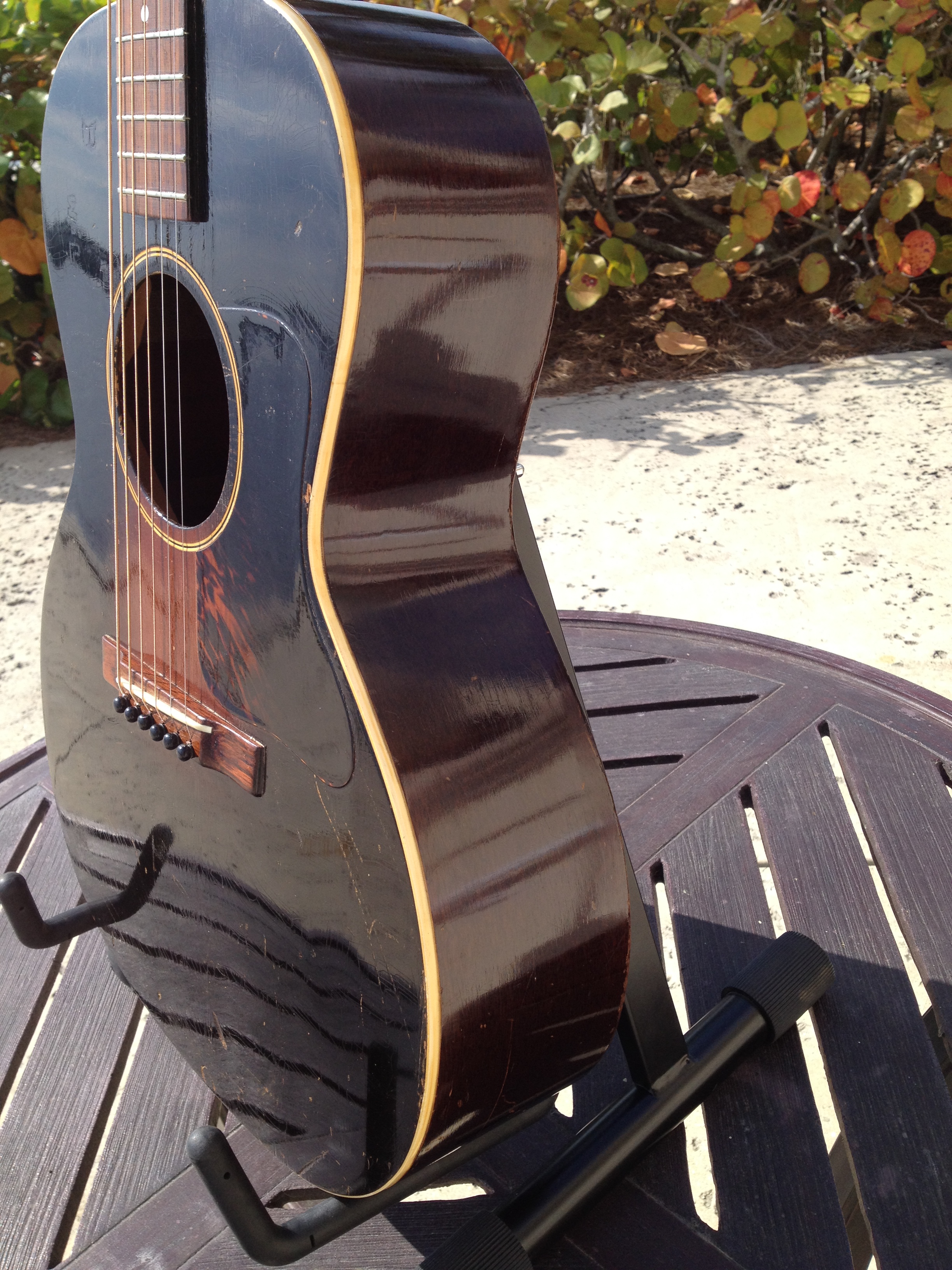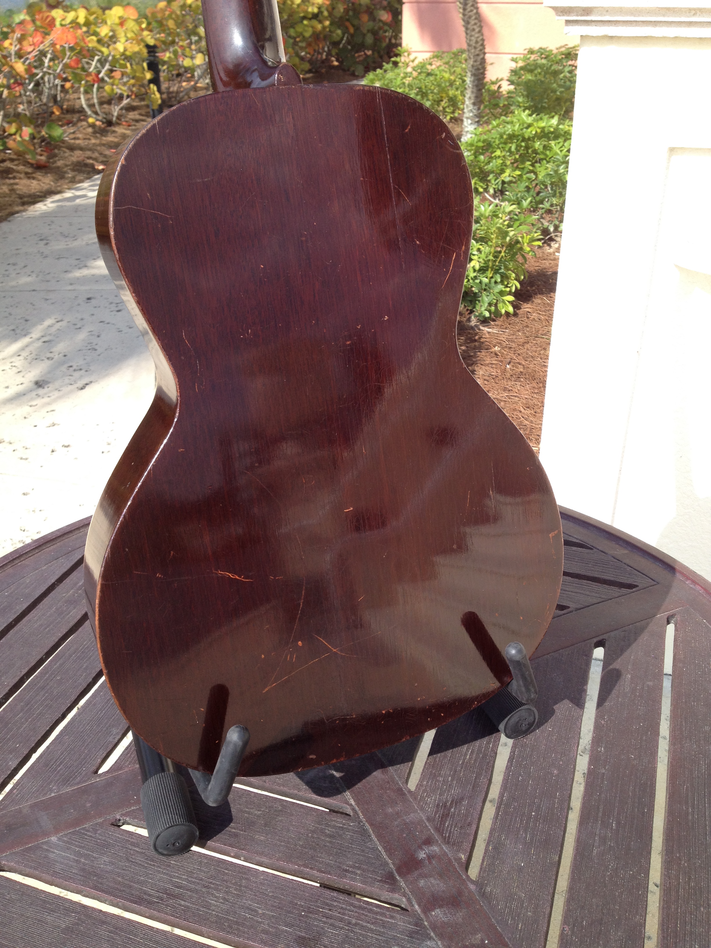 Although the top shows a few scars and initials, the finish is original with no over spray and the guitar is remarkably well-preserved. This 1934 model has all the characteristics we consider most desirable for an L-00, resulting in a brilliant sound. Listen to the YouTube videos to hear what it can do. Fish plays two versions of Little Martha, one finger style and one flat picked, plus many other styles to demonstrate the range of tones available.