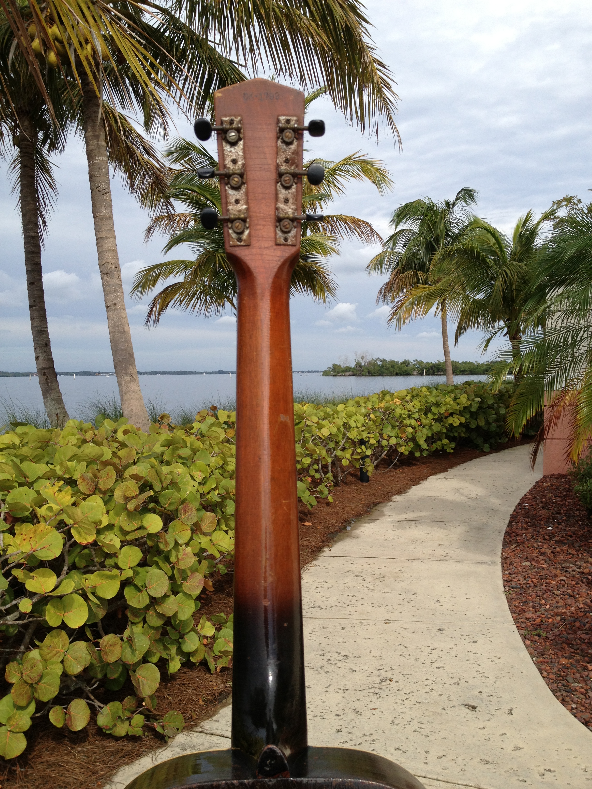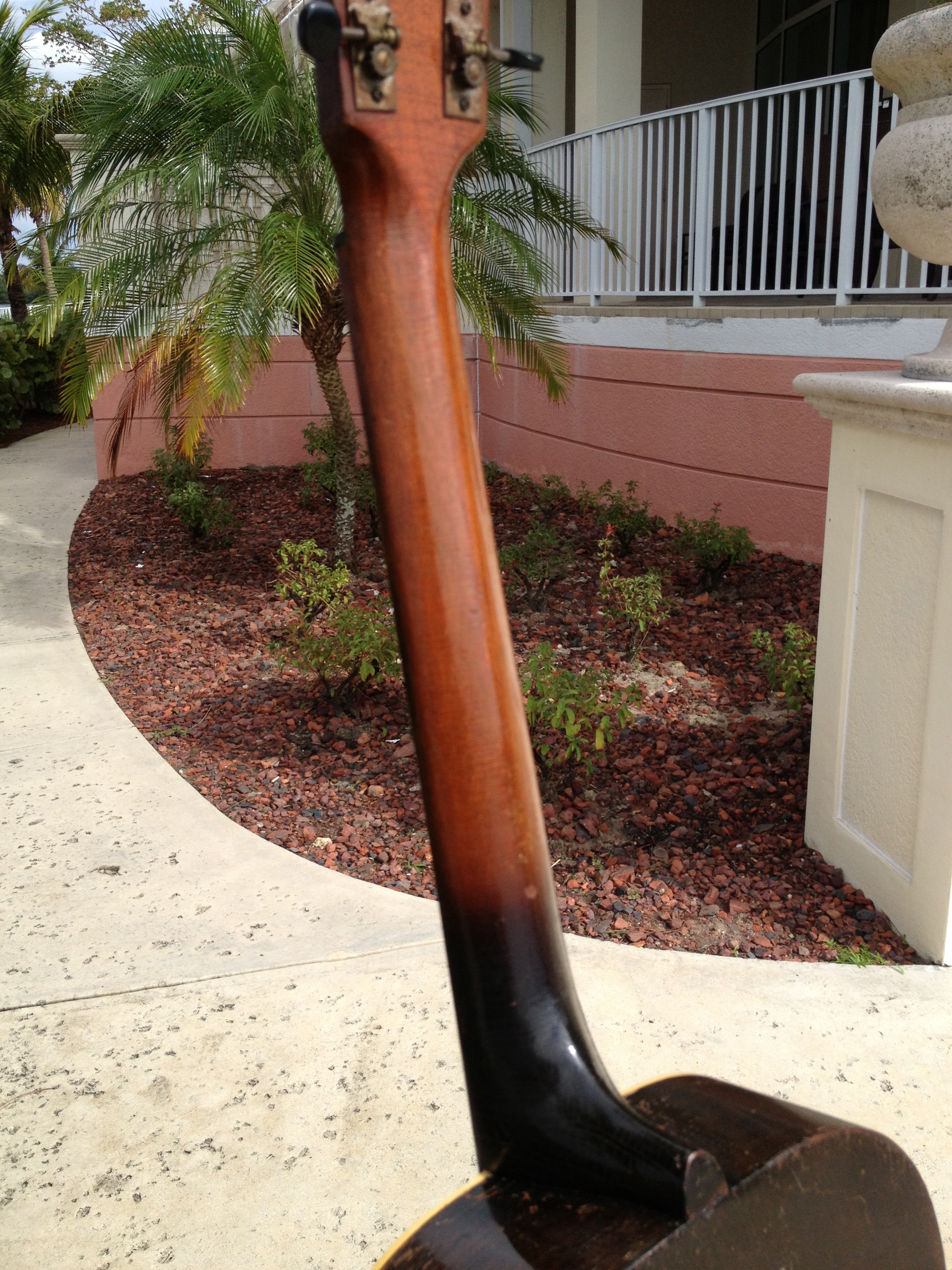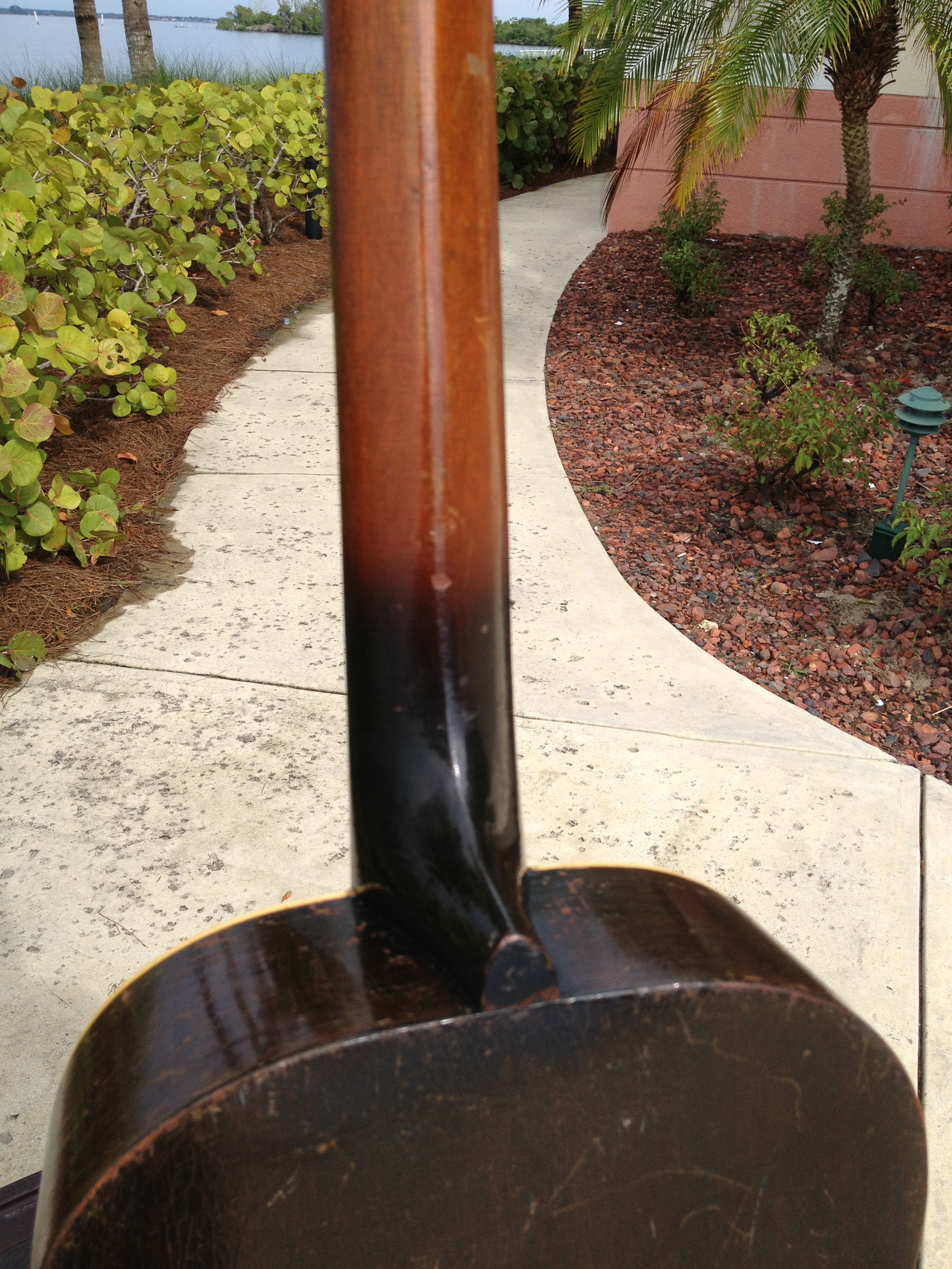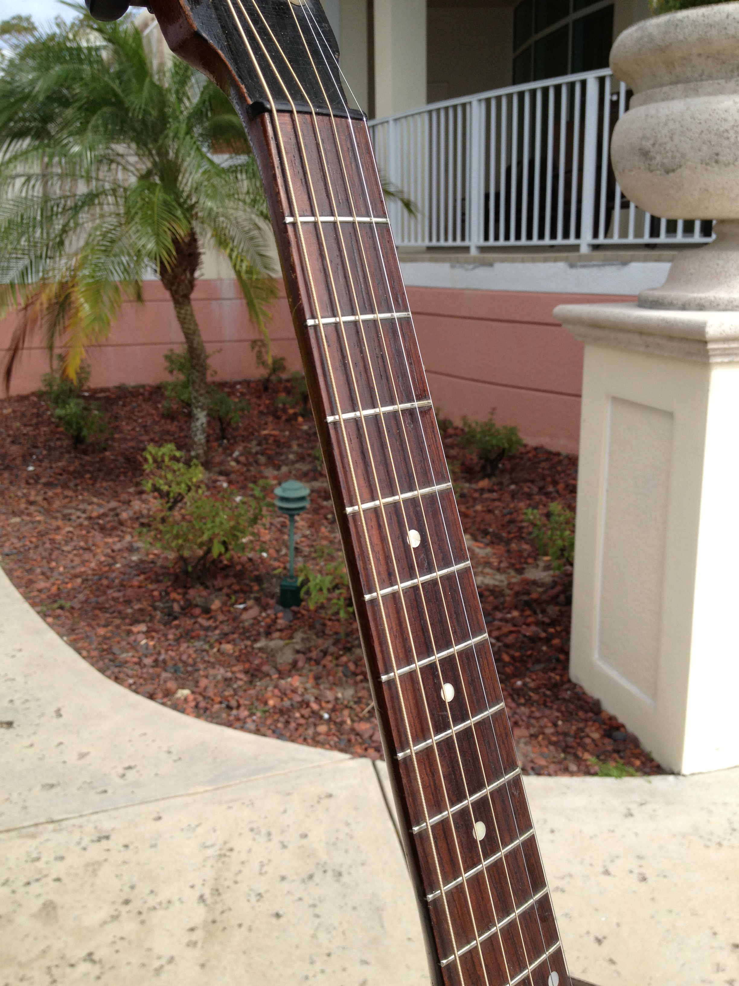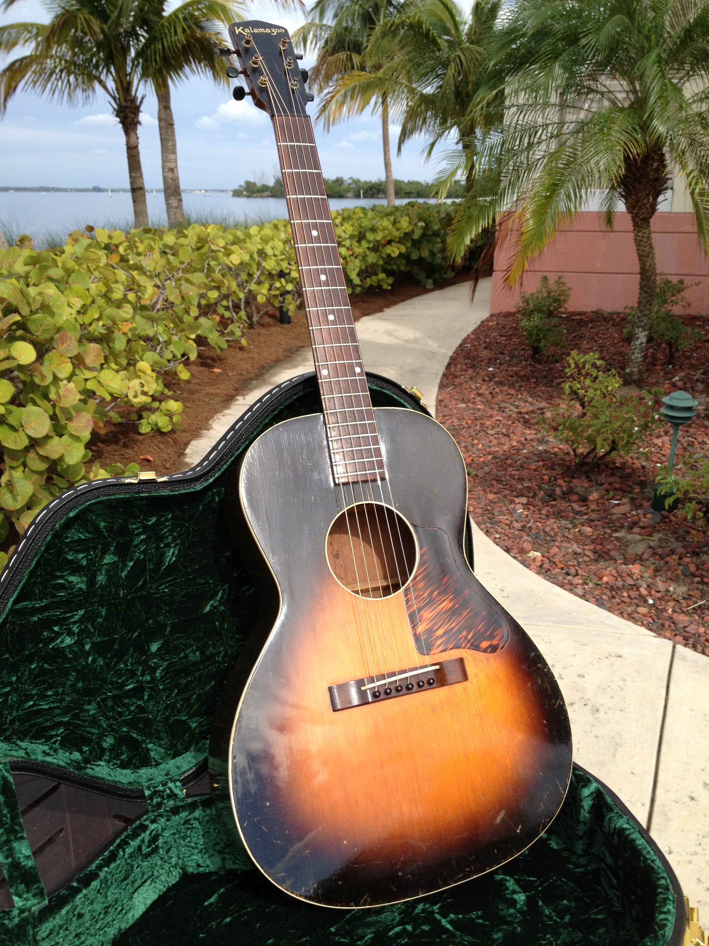 And such the survivor she is, all there and original to the last fret and all cool! Based on the Gibson L-00, yet ladder braced. A stunning depression era legendary finger style / slide blues picker just like Robert Johnson played. Totally cool and did I say she is simply … beautiful?