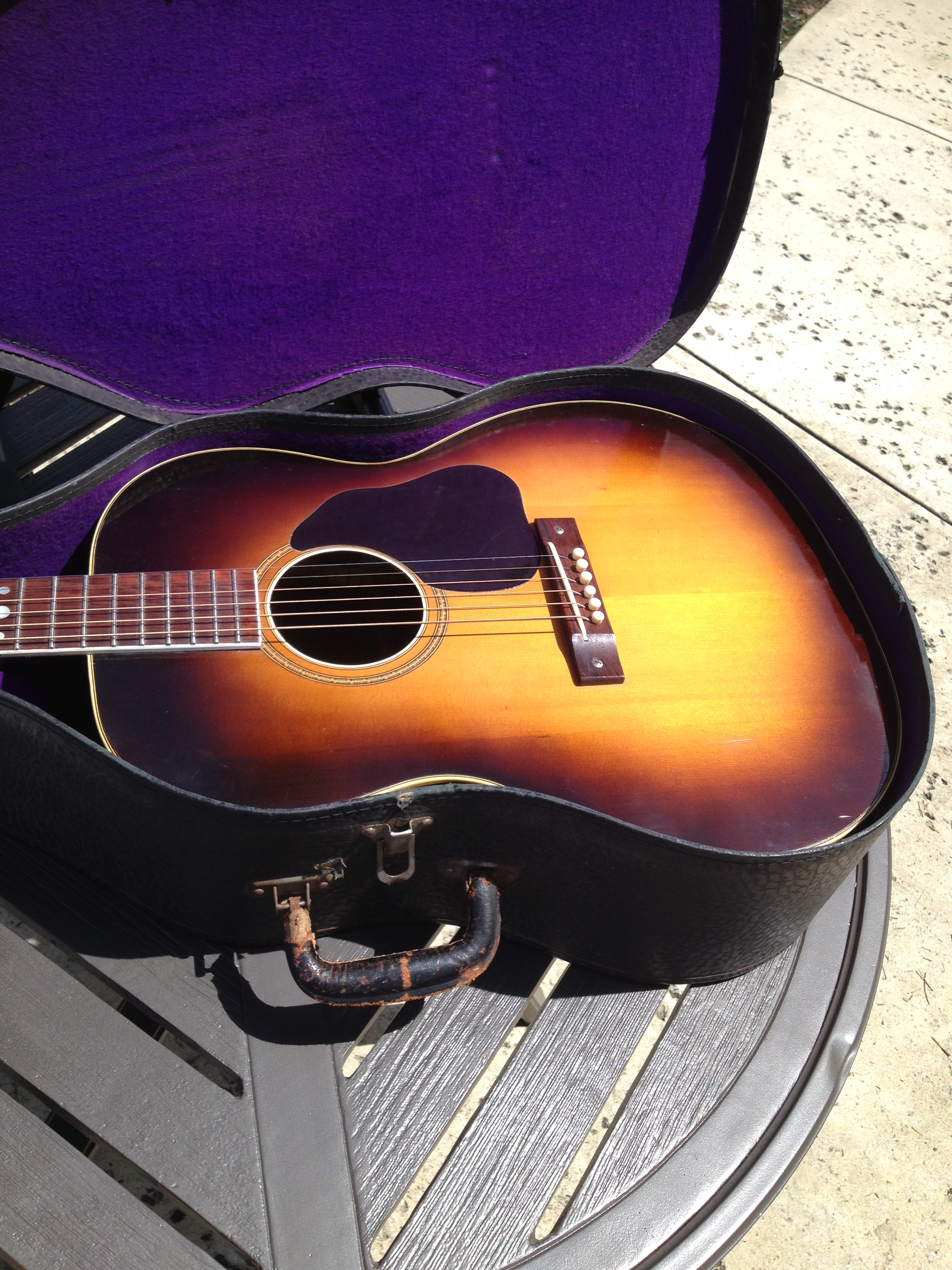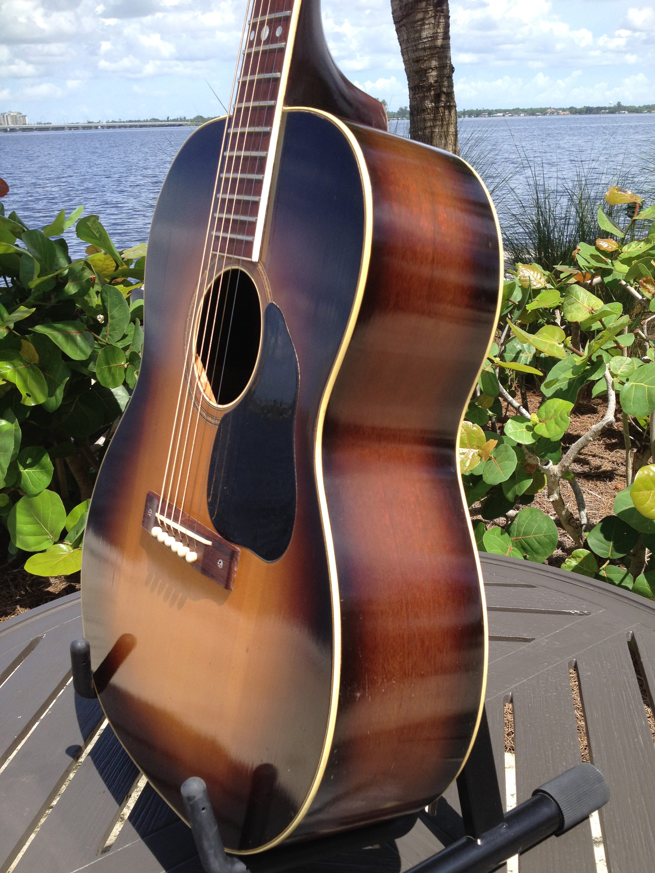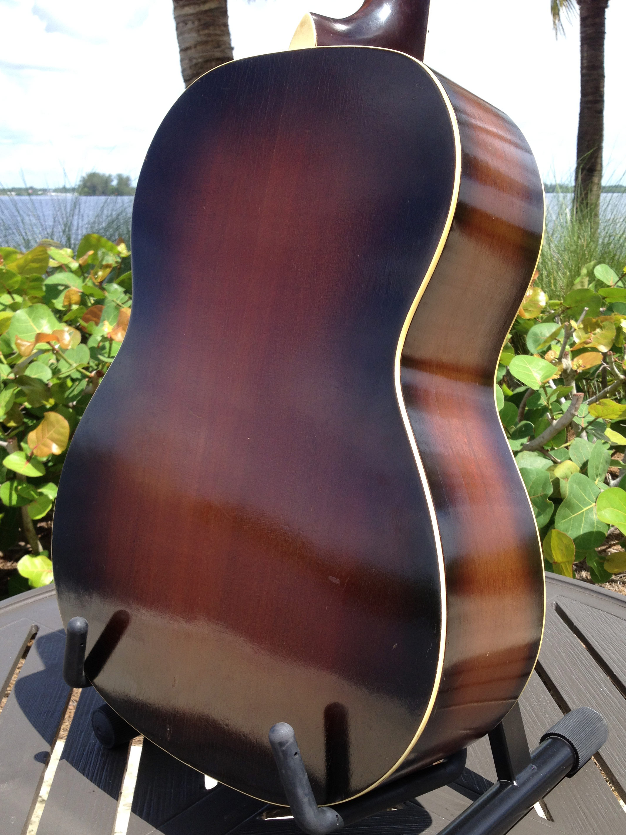 If you are looking for a rare and collector grade Pre-War flat top, you won’t find one cleaner than this. A crack-free one family owned guitar that still has the original bridge pins & end pin, even the original Geib case is in fine shape. Offered at Vintage Licks just as it was ordered from the Montgomery Ward catalog by the original owner, now set up to play by a professional luthier.