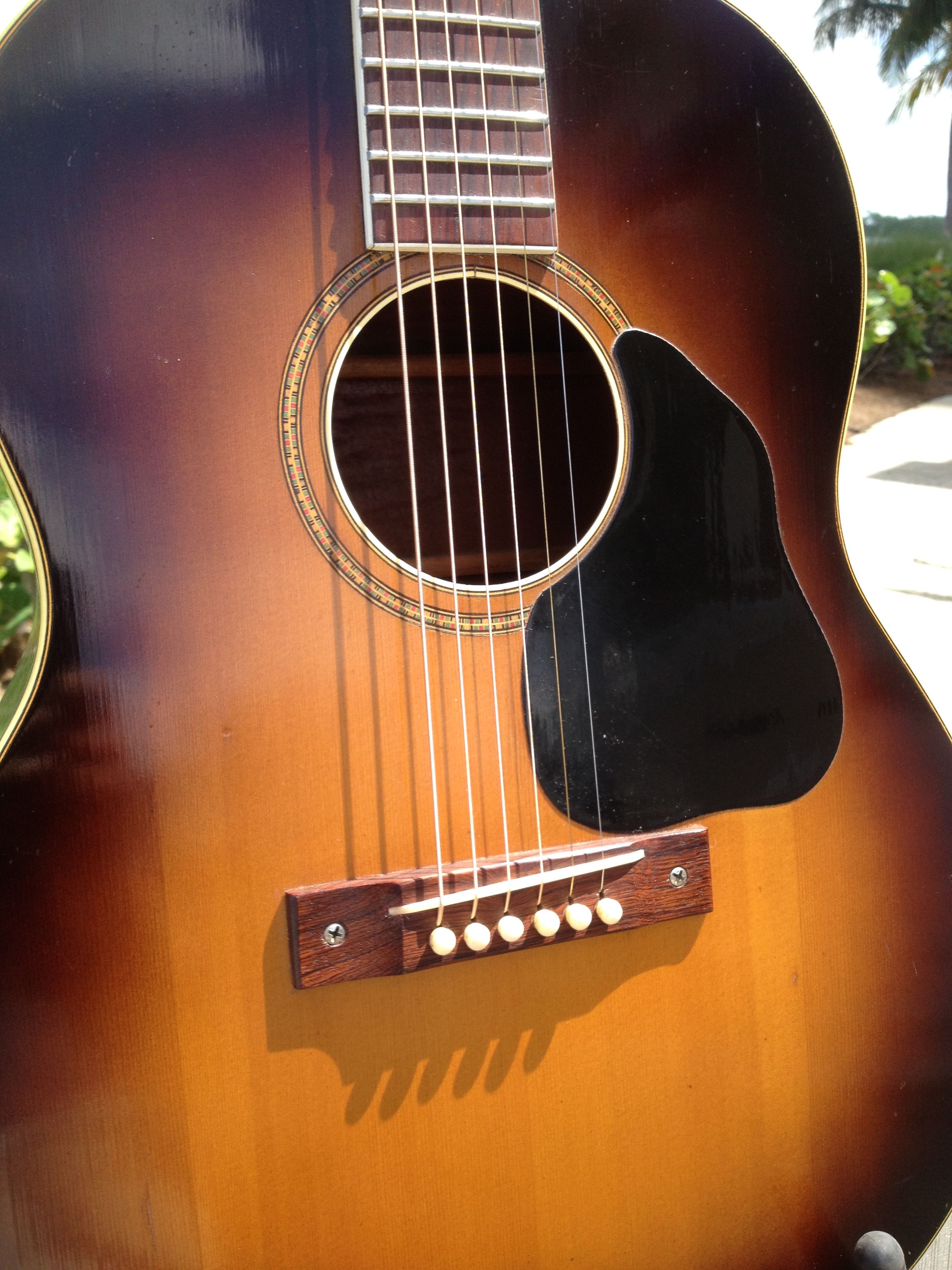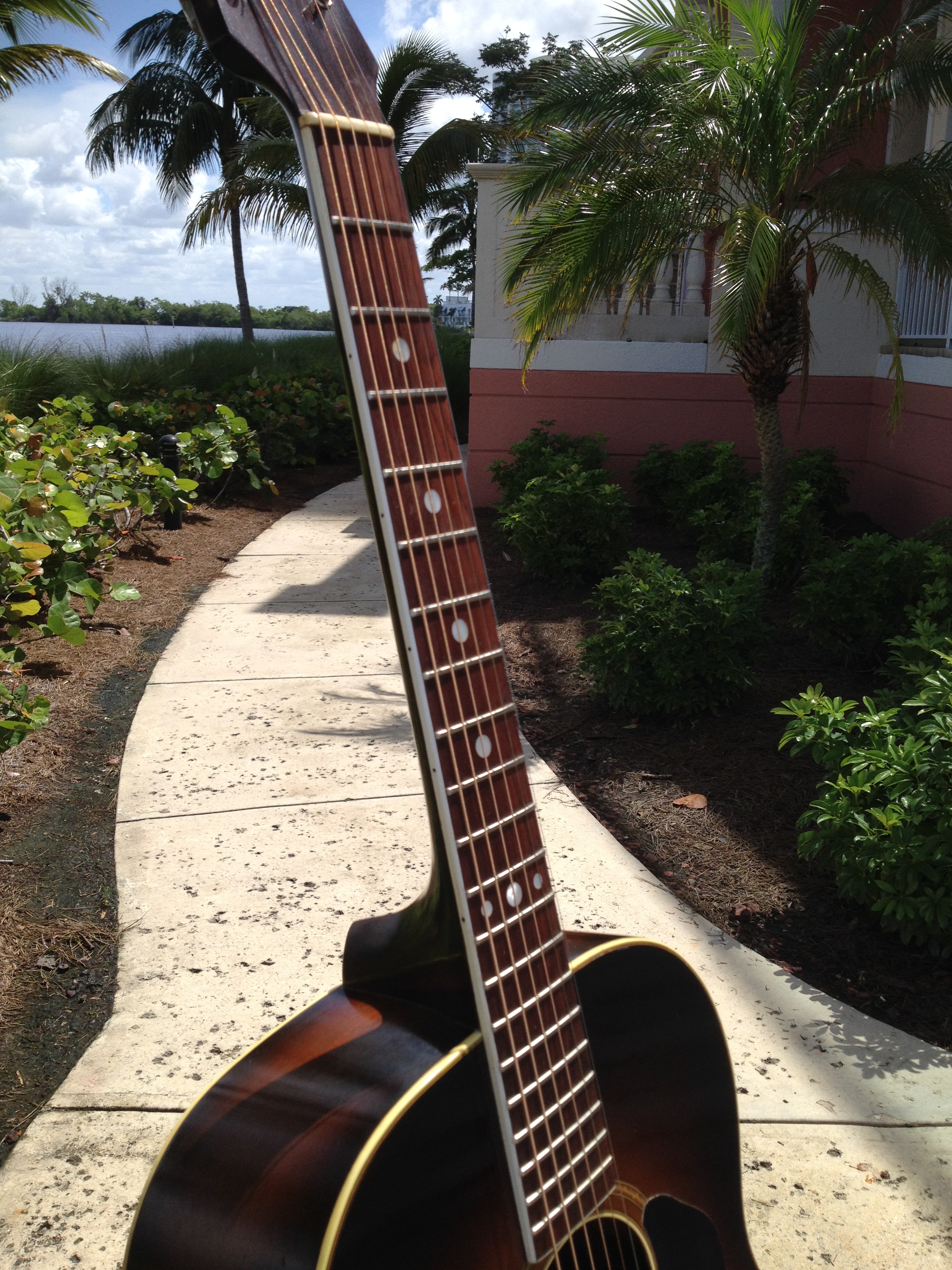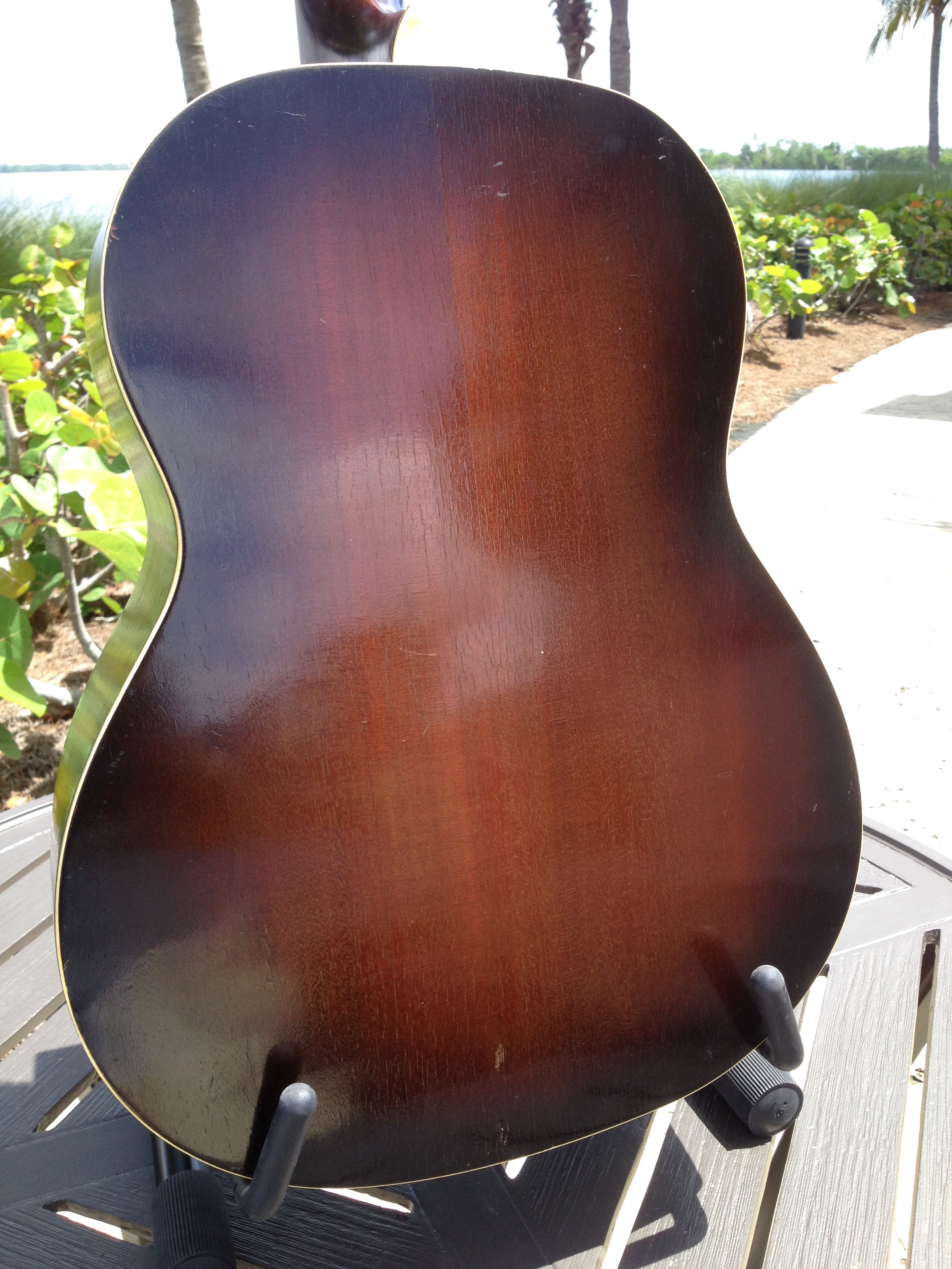 If you are looking for a rare and collector grade Pre-War flat top, you won’t find one cleaner than this. A crack-free one family owned guitar that still has the original bridge pins & end pin, even the original Geib case is in fine shape. Offered at Vintage Licks just as it was ordered from the Montgomery Ward catalog by the original owner, now set up to play by a professional luthier.