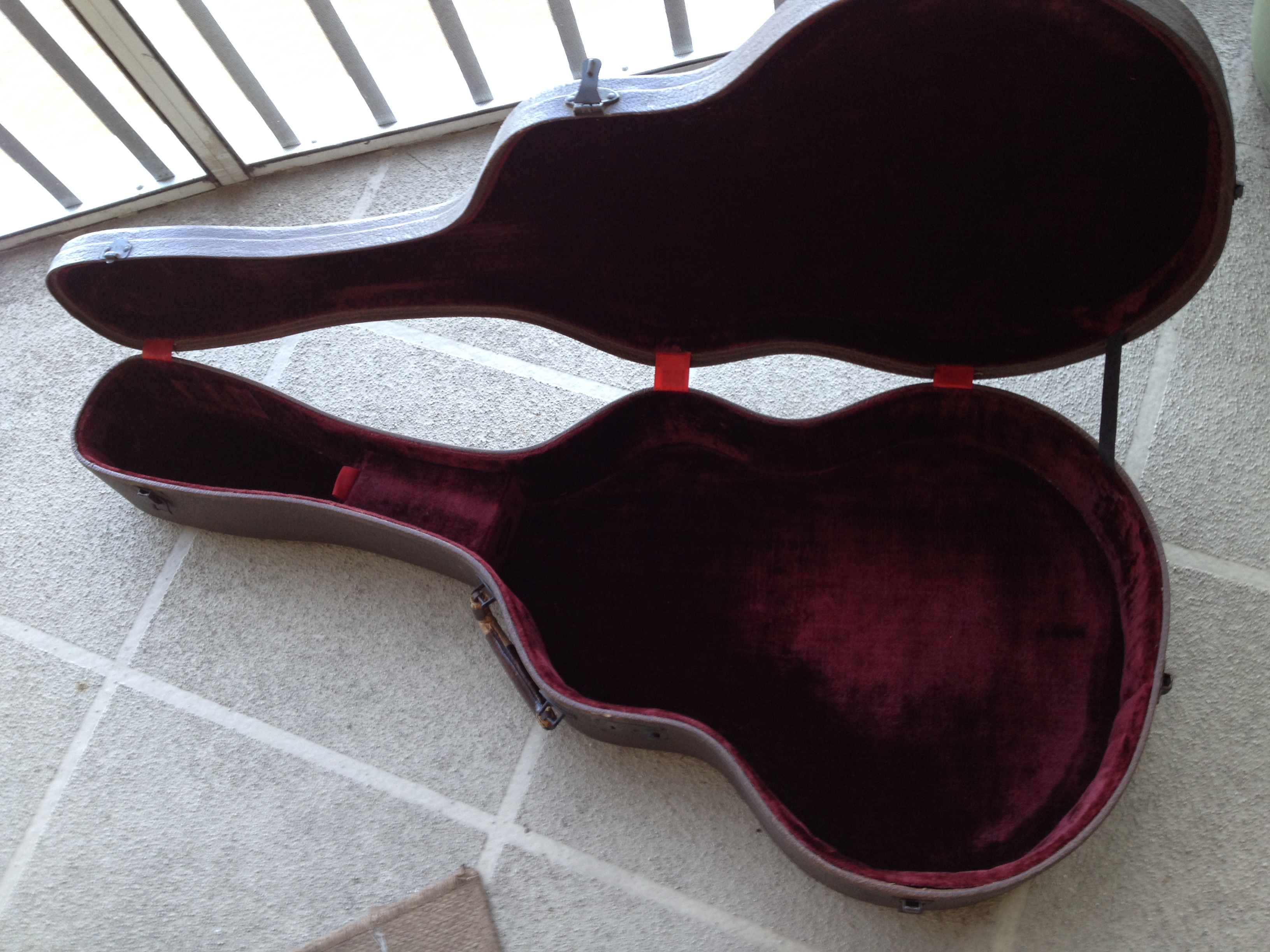 Brown textured with Cabernet interior. Period correct for a 40s acoustic arch top like a Gibson L50.