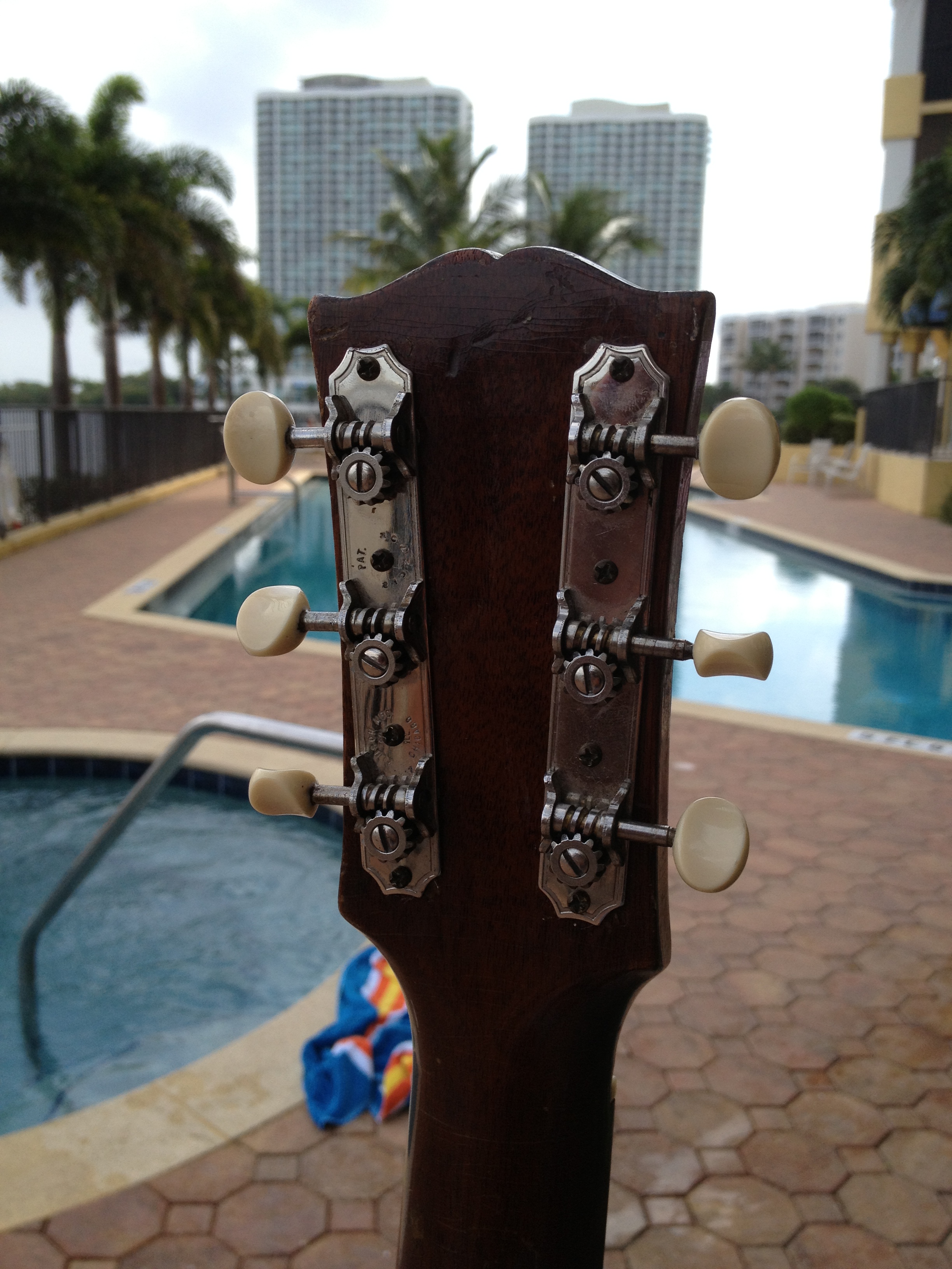 Earlier this year at the 2013 NAMM show, Gibson announced a new series of reissue Banner guitars . At the same time John Thomas released his book about the Kalamazoo Gals who built the original Gibson Banner guitars during World War II http://kalamazoogals.com/. Consequently the profile of Banner Gibsons has never been higher and it’s become difficult to keep up with the demand as I continue to get inquiries for Banners we’ve sold. I’ve made it a mission to locate and bring back as many of these historically significant and important guitars as I can for players and audiences to enjoy.
