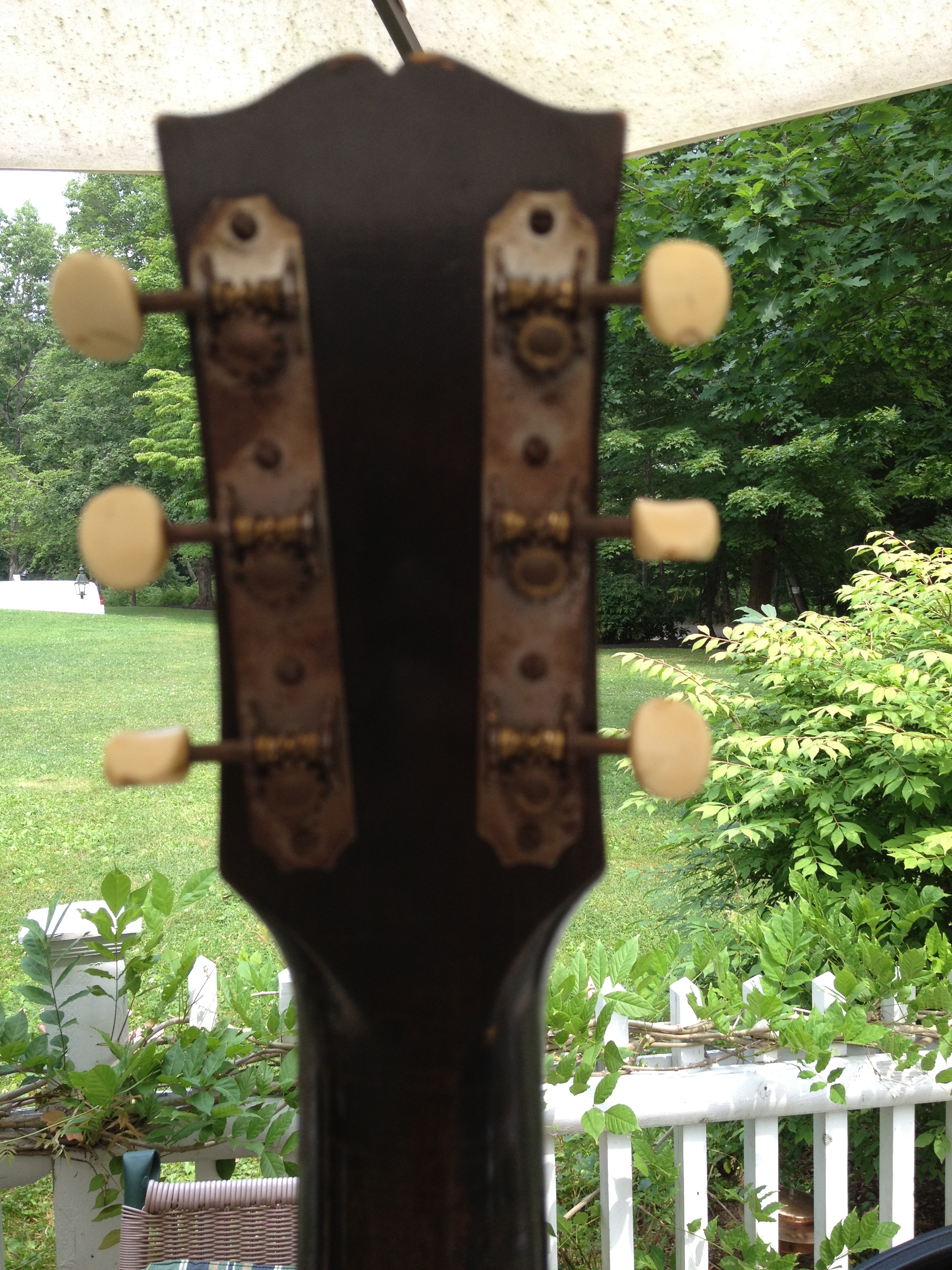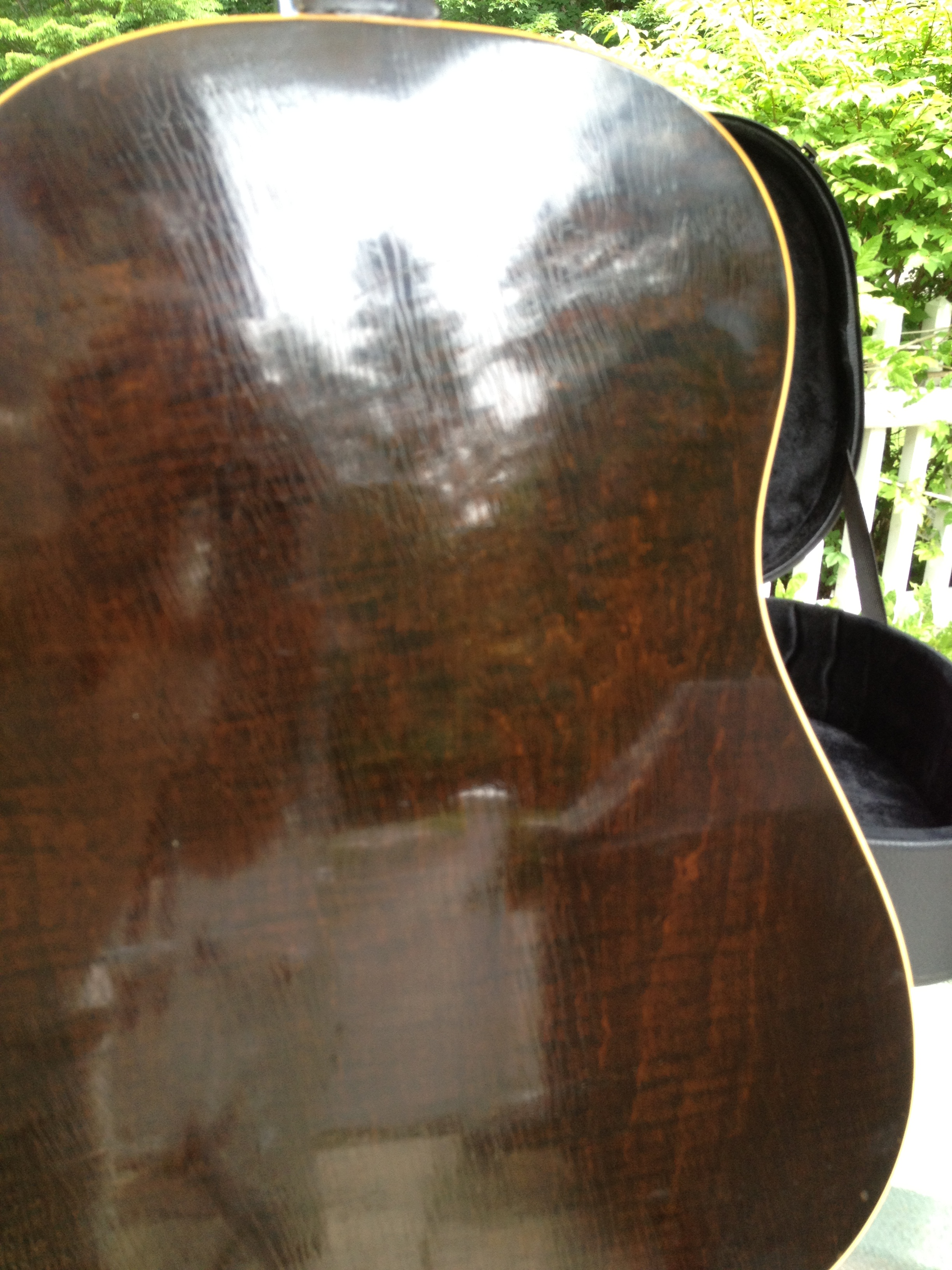 Original tuners and buttons, clean original bridge plate and braces. This one has the highly figured maple back, which is unusual and very rare as well. The finish on this guitar is all original.
