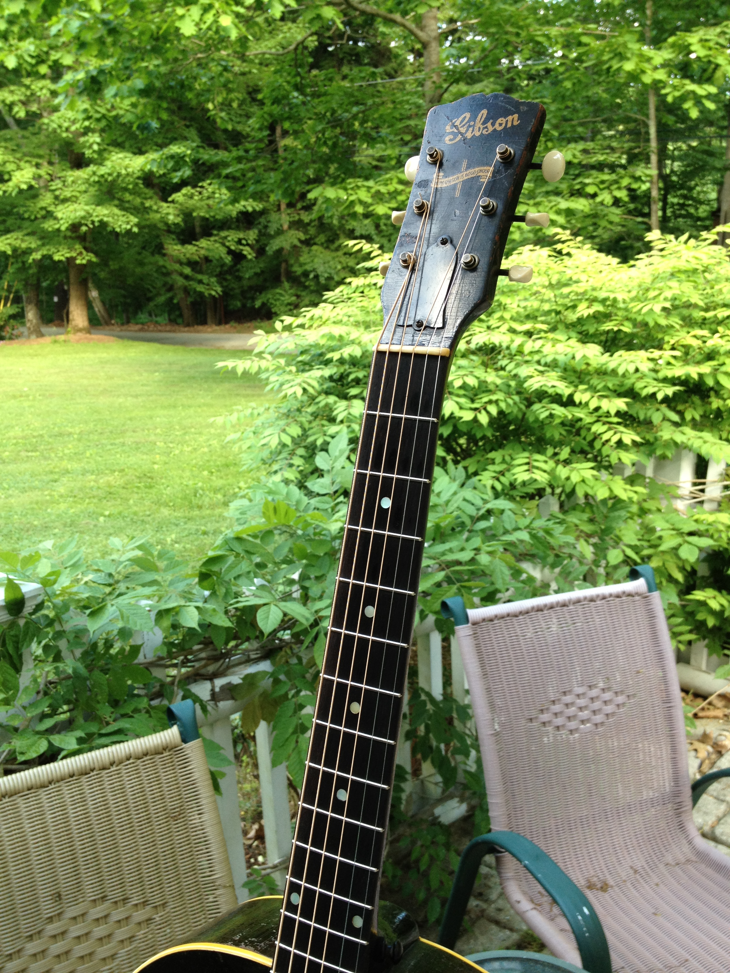 I found this guitar in Nashville, and it’s a true musicians tool and certainly a players guitar. Quite versatile indeed, equally suitable for finger style country blues, flat picking or strumming either on stage, in the studio or comfortable picking all night long on the couch.