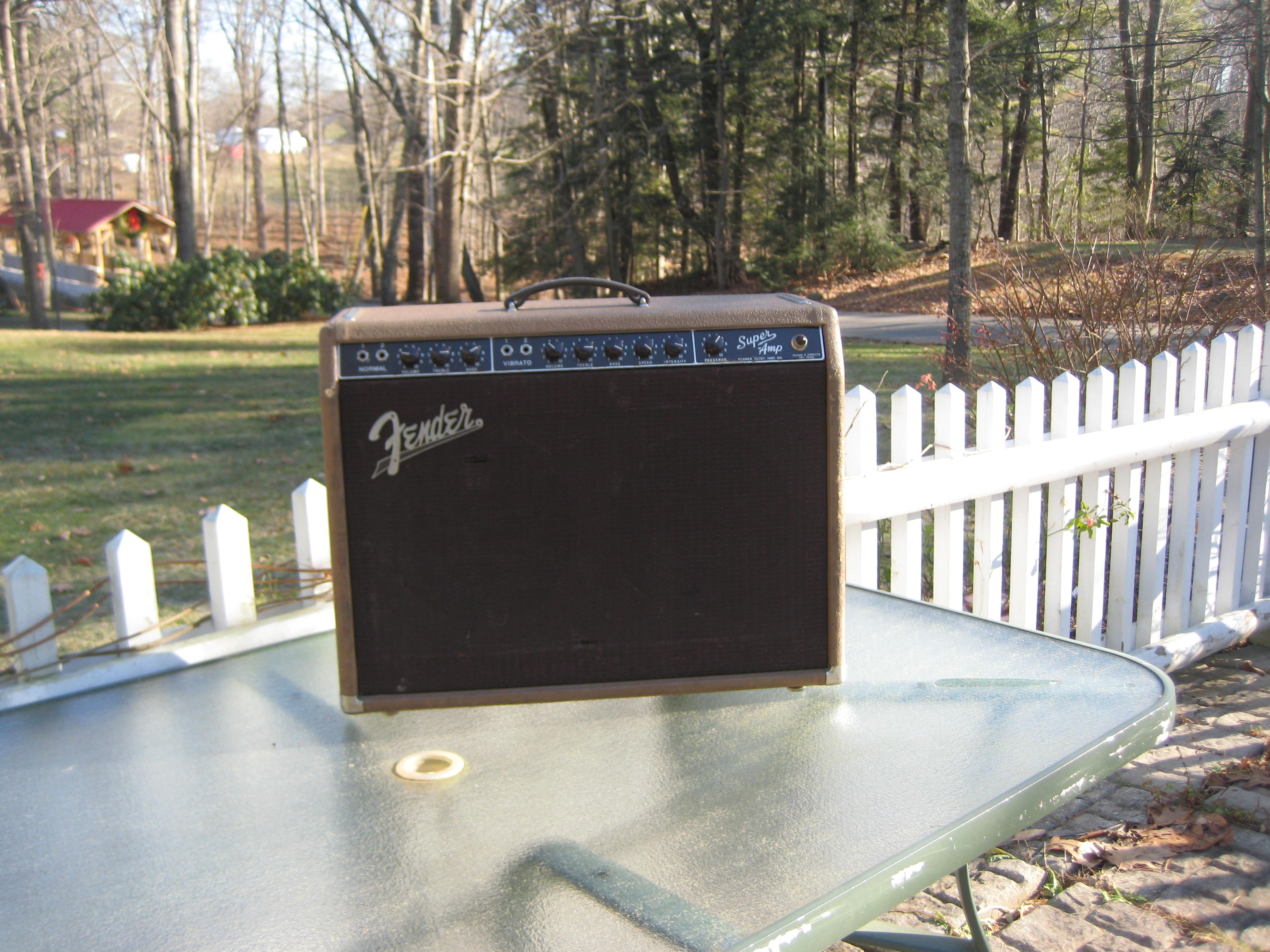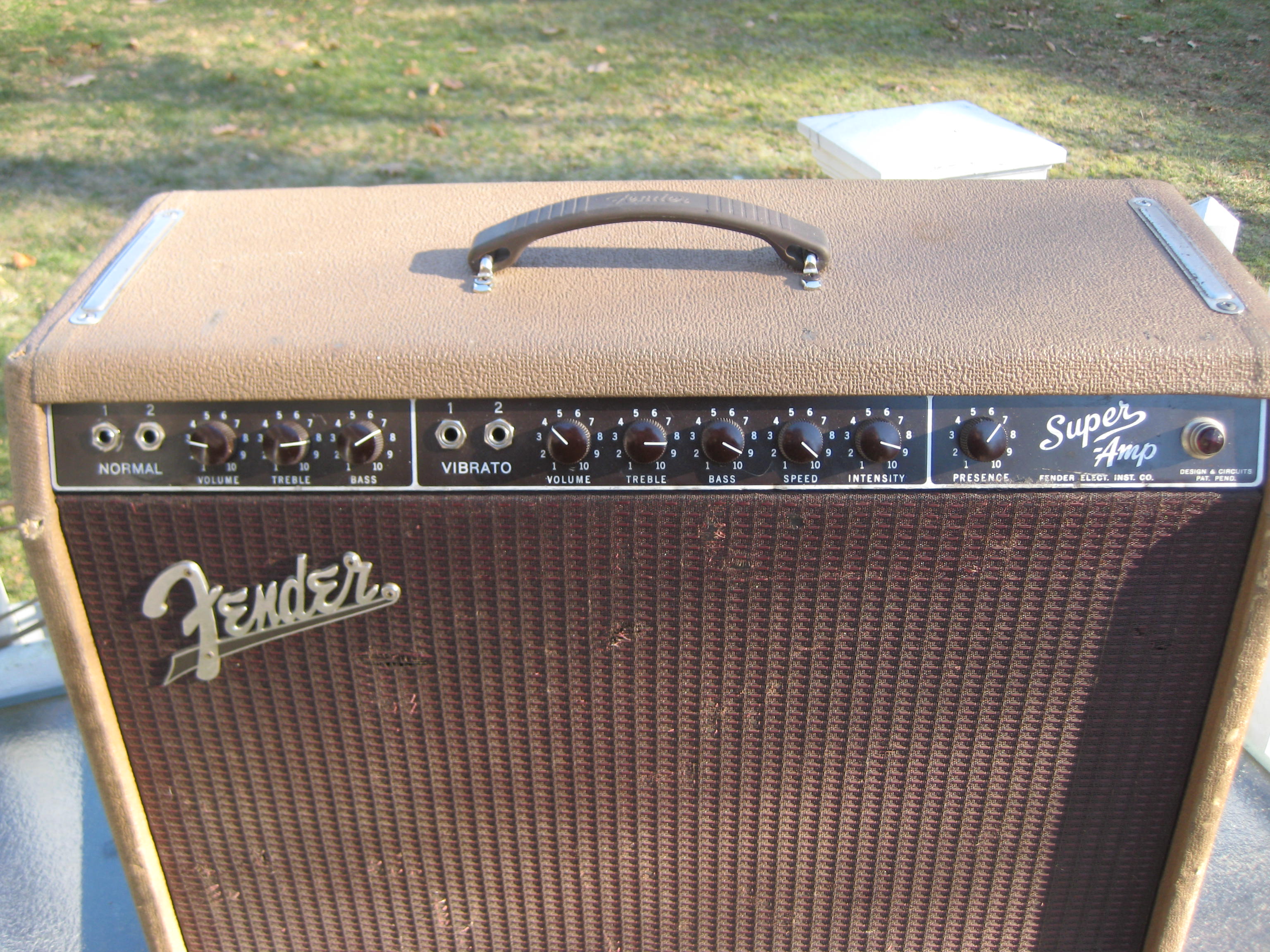 Vintage 1961 Fender Brown Super Amp. This amp features a largely original exterior in good condition and great vintage tone.
