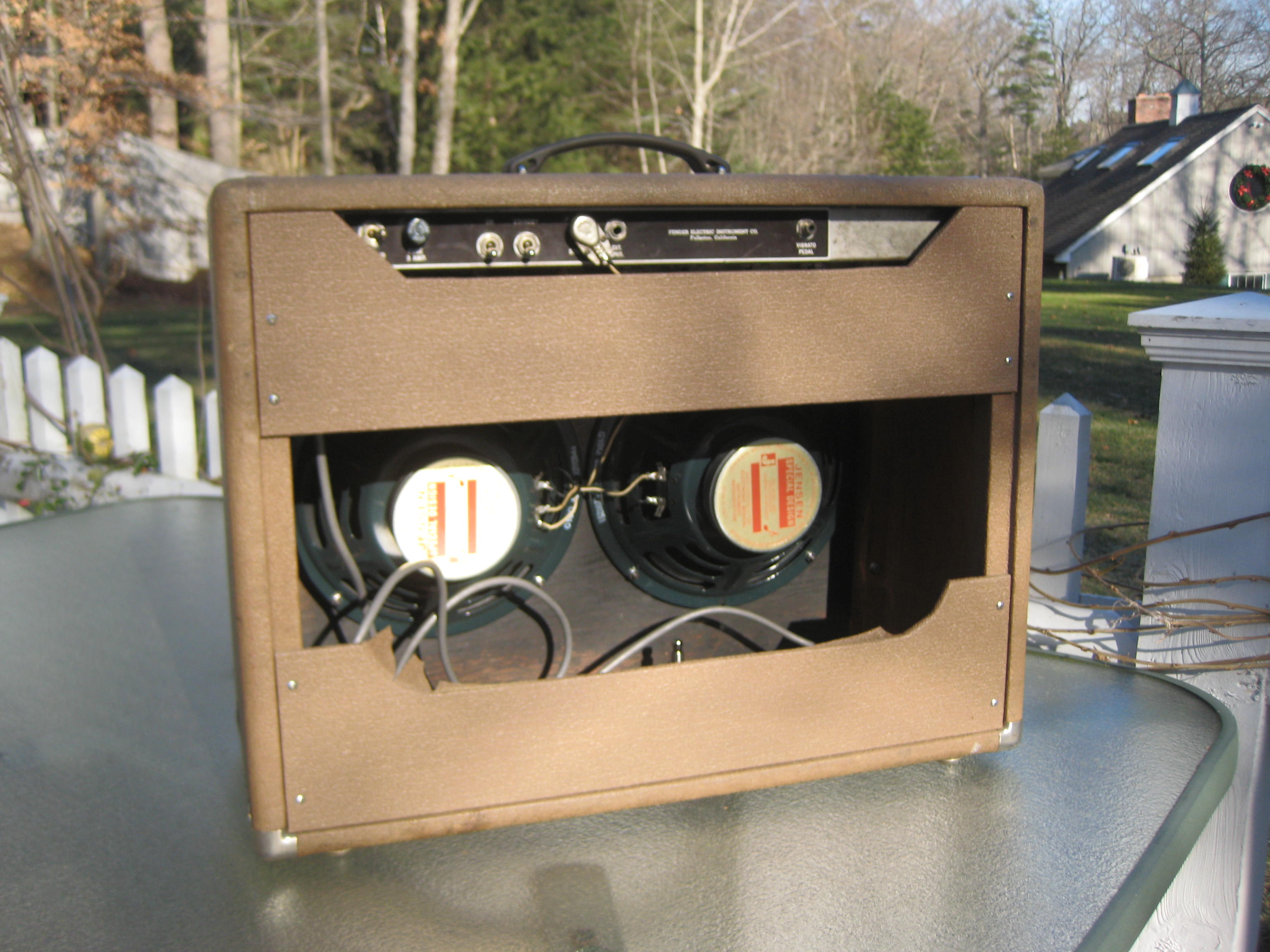 The power and output transformers appear to have been replaced in the 70’s with the genuine Fender replacements for that time period. A few caps have been replaced, however all but one of the original Astron mustard caps are still present. The speakers were replaced with what look to be modern Jensen C10Qs. All pots were cleaned, and solder joints were retouched. The amp is ready to play.