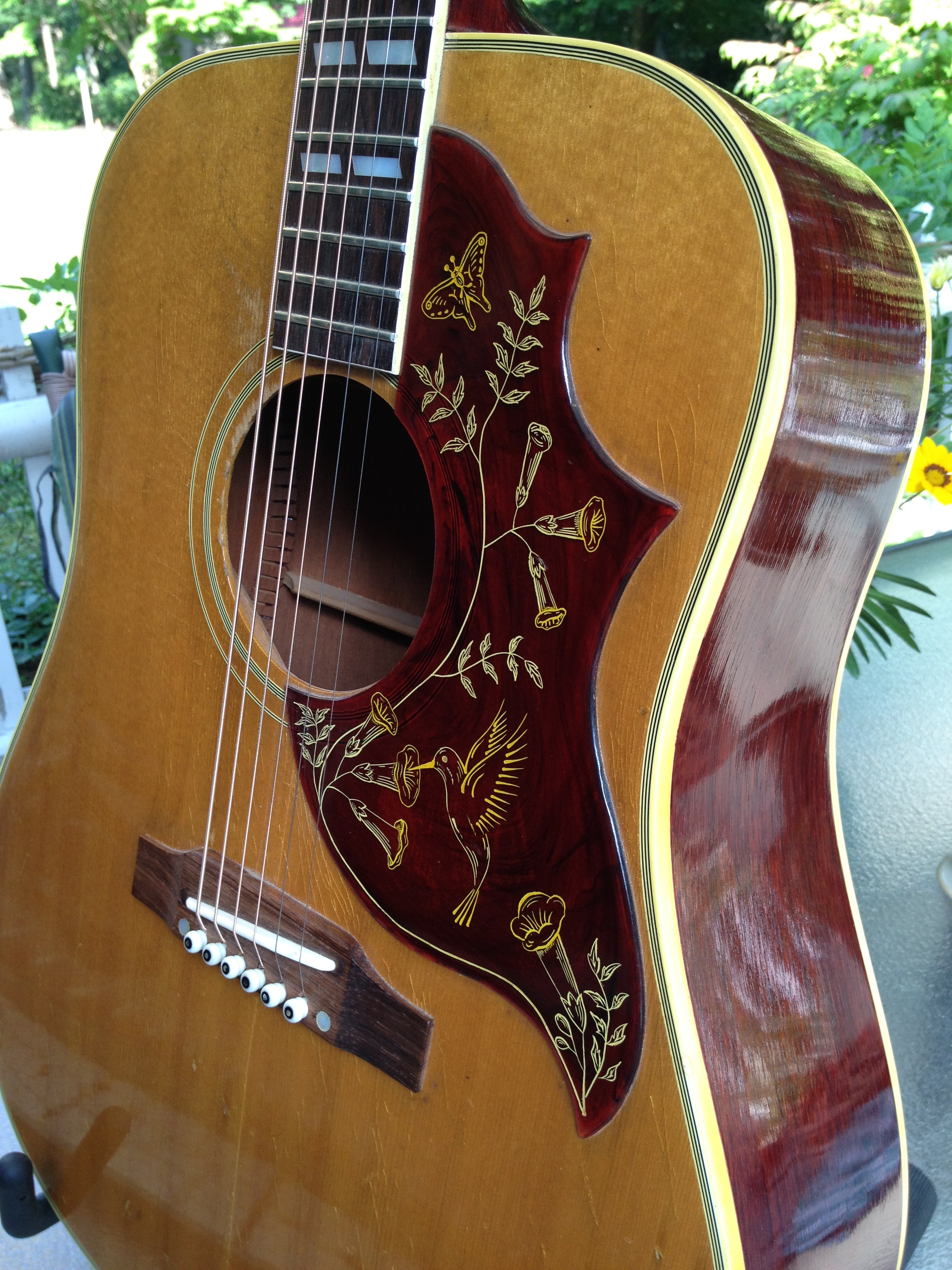 This guitar is professionally set up and sounds fabulous. Besides that rich Hummingbird sound , it’s much louder than other examples we’ve played.