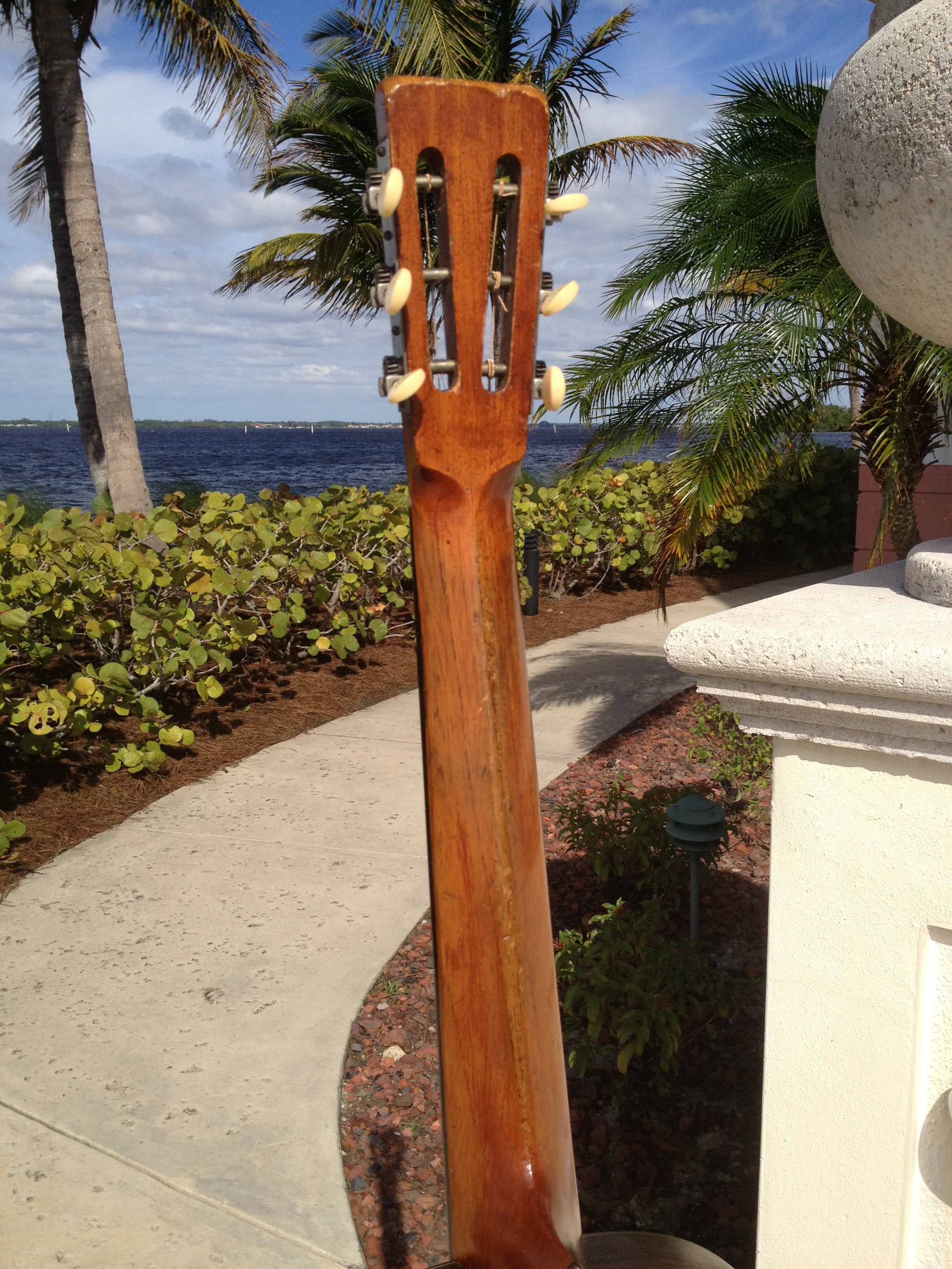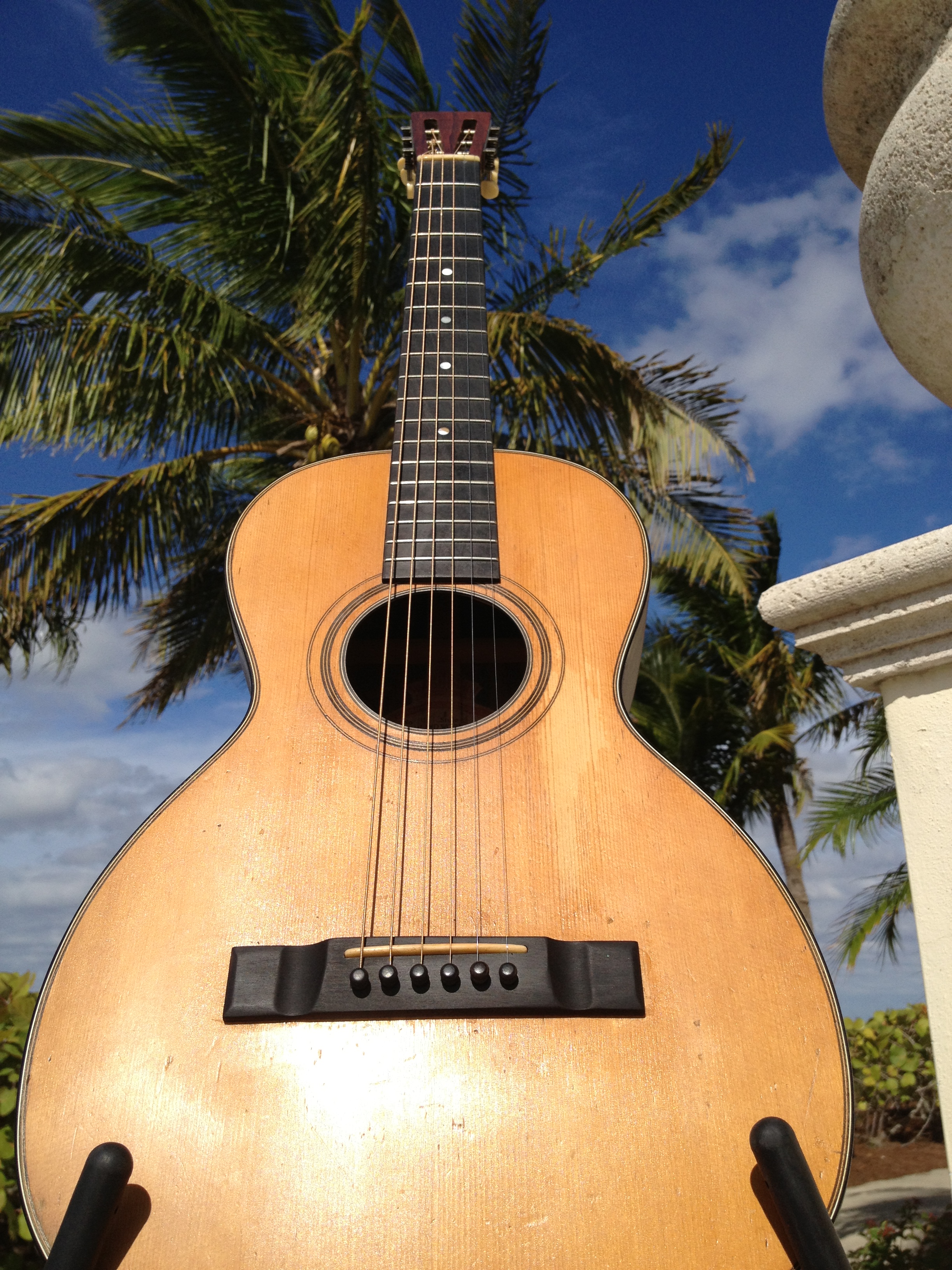 Nice sounding finger picker with a 1 3/4″ nut and comfortable action, a true joy to play and hear. Simply a fun old survivor.