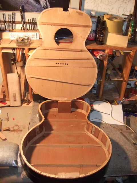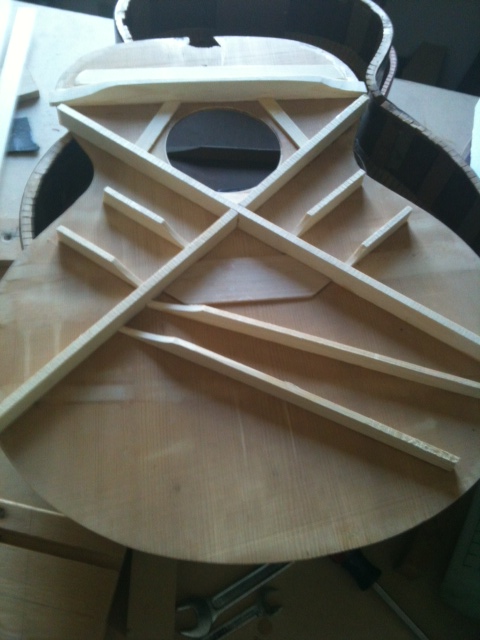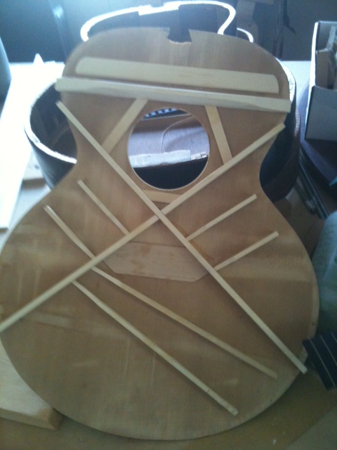 We love how this one turned out after the the X brace modification. David chose to use two tone bars as opposed to the three tone bars which were on my other Carson jumbo that was modified for Roy Bookbinder by John Arnold. As a result this guitar has a much sharper and more open sound.