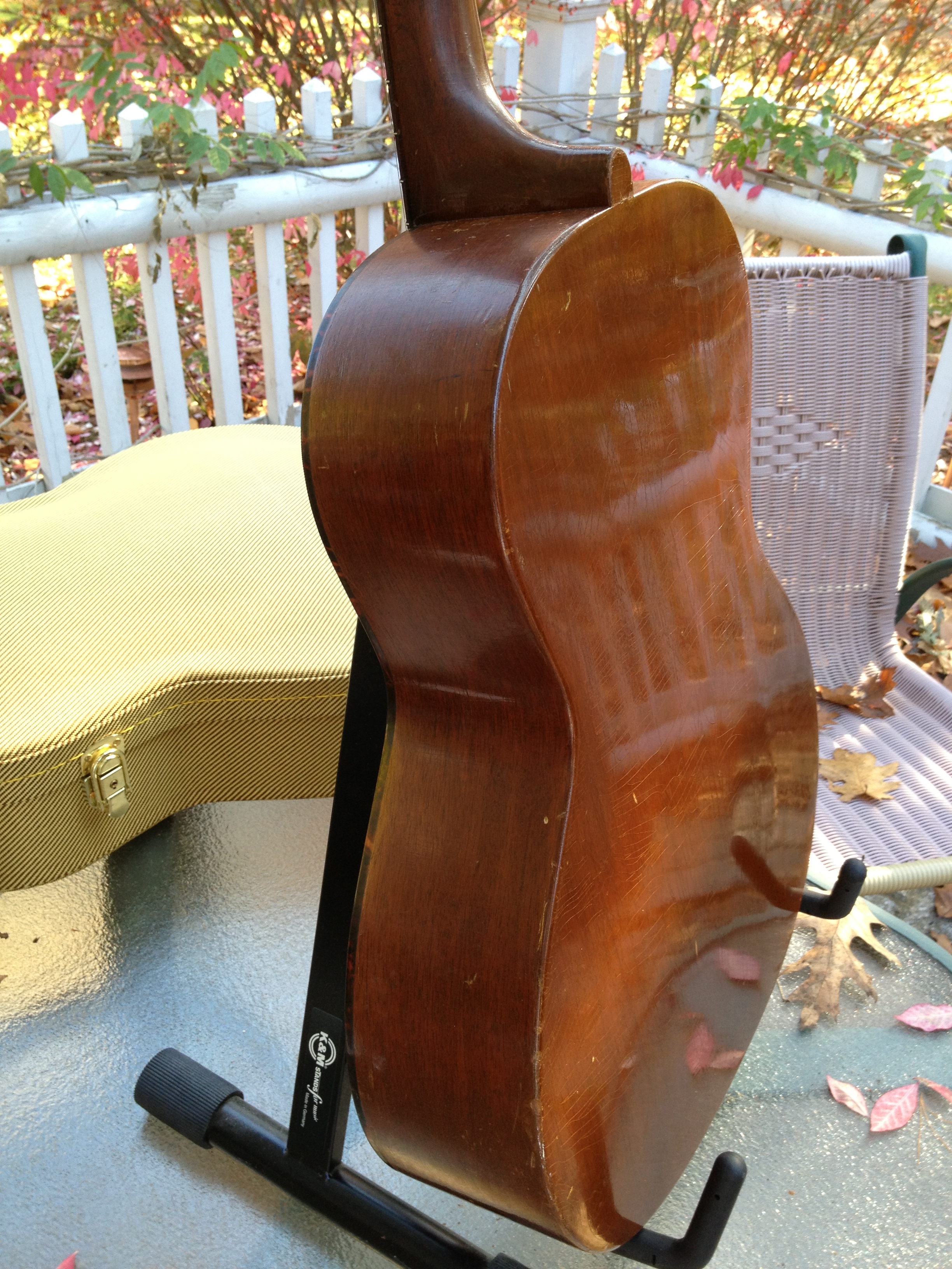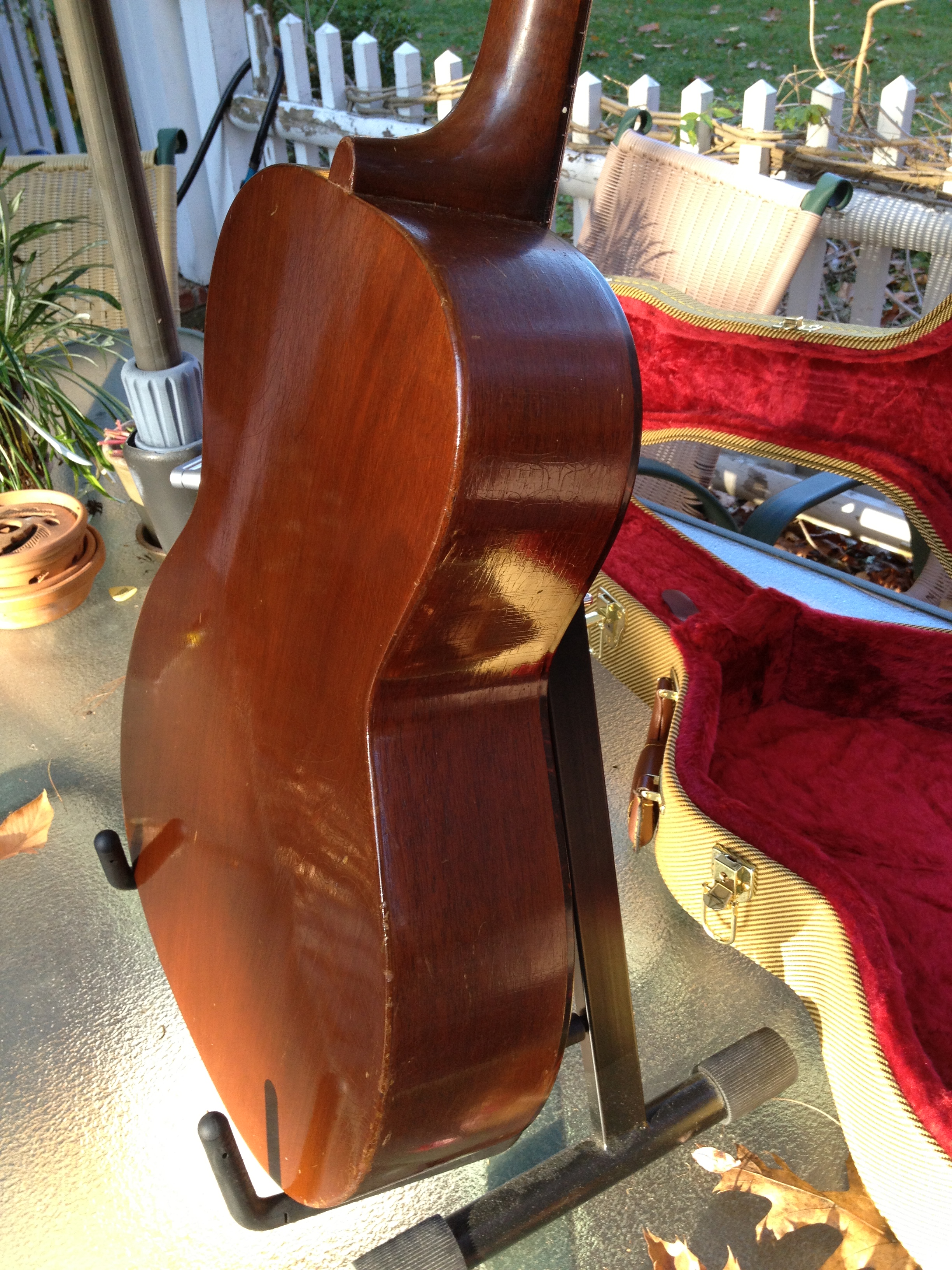 Recent pro neck set, all new frets with Willi Henkes bridge pins from Germany and a stunning set up. All marvelous workmanship by David Hatchard.