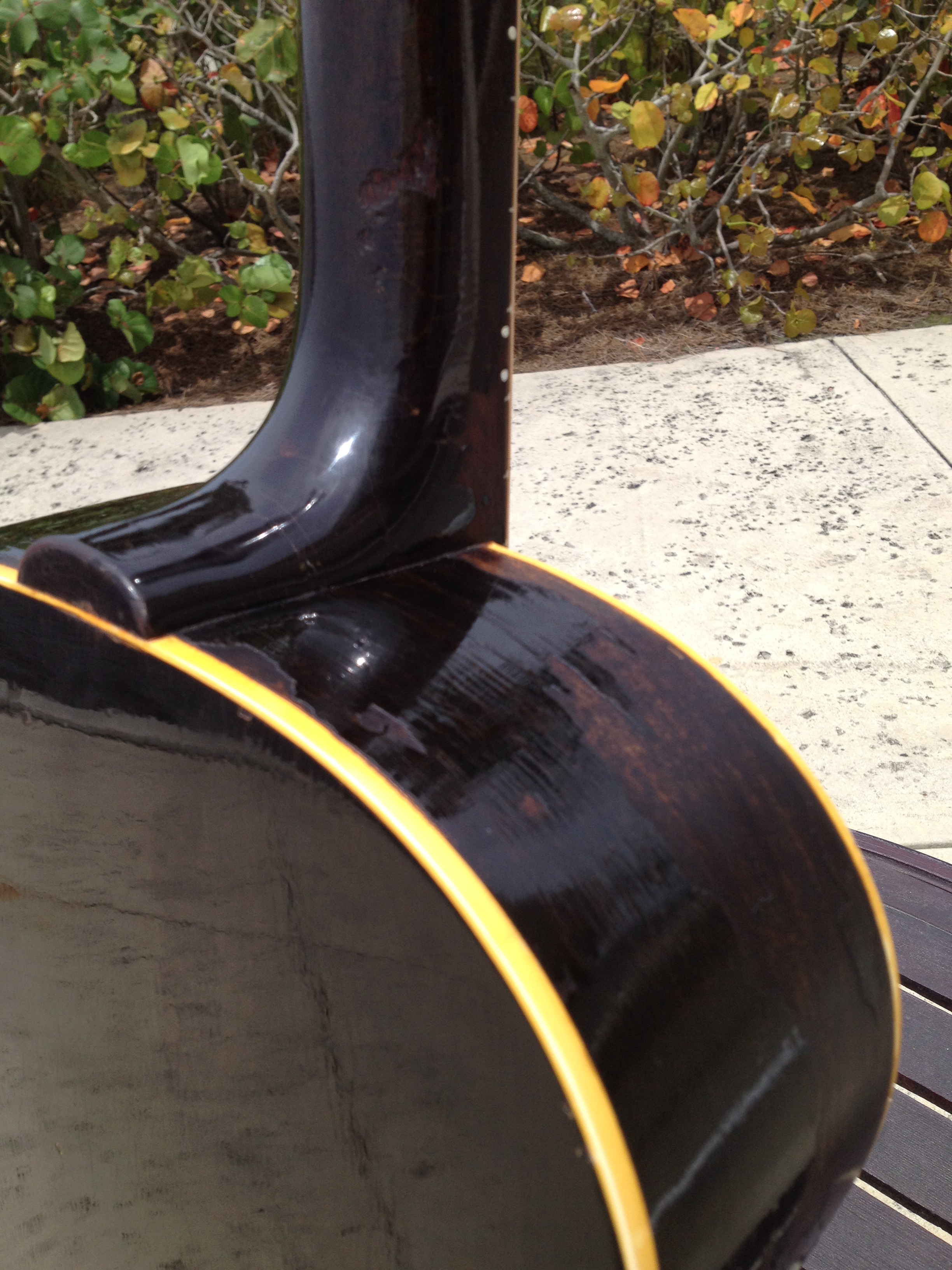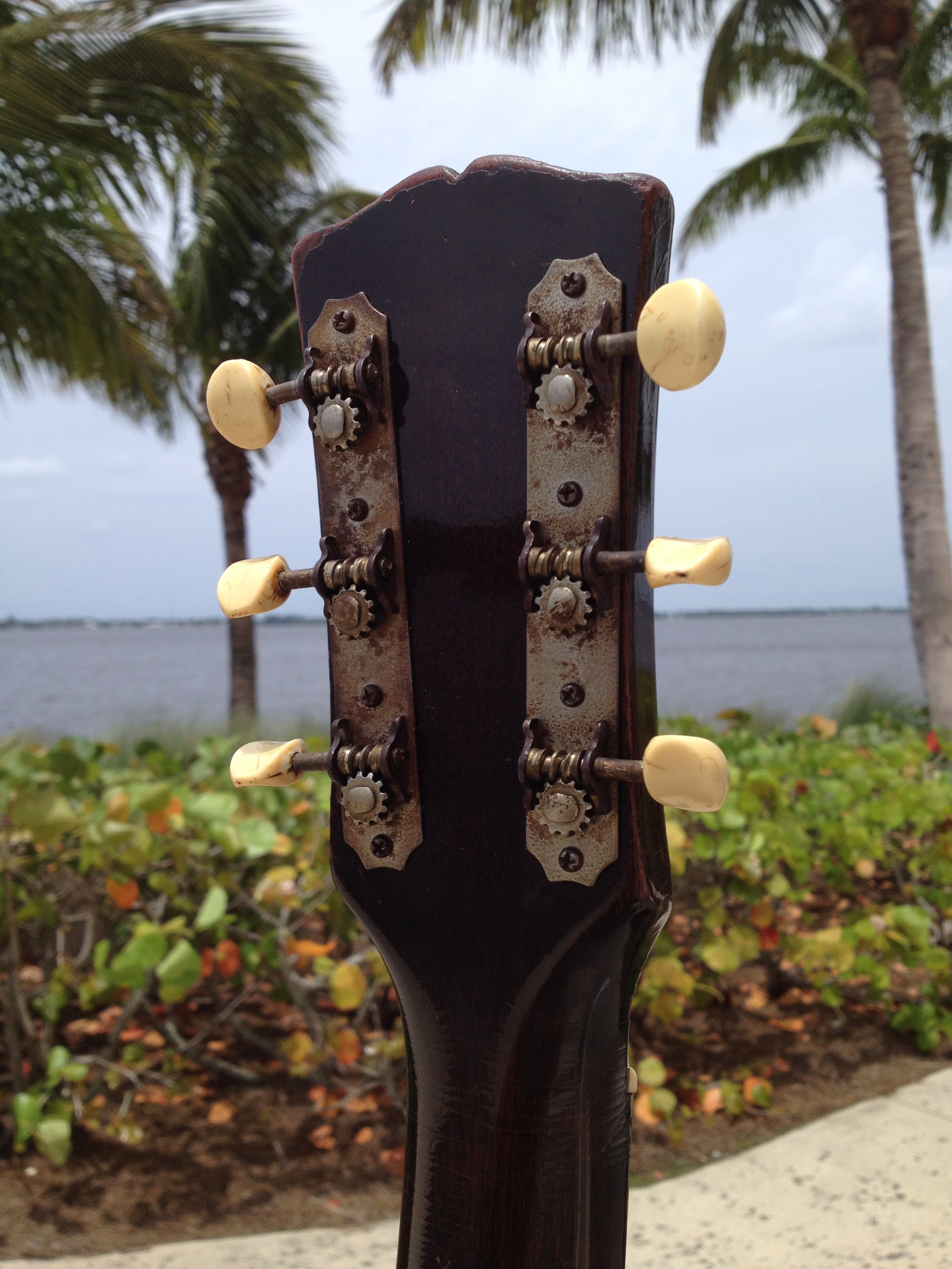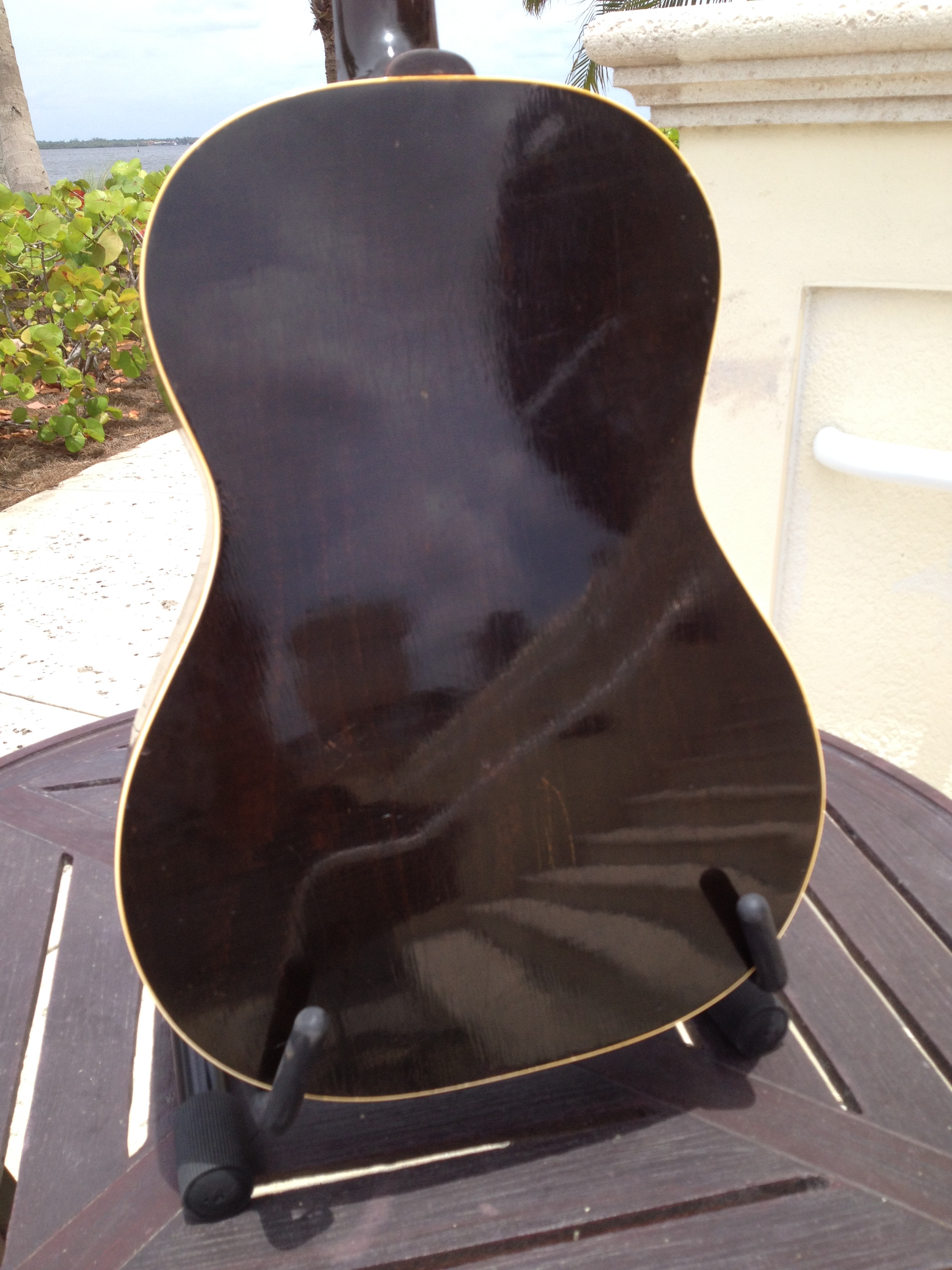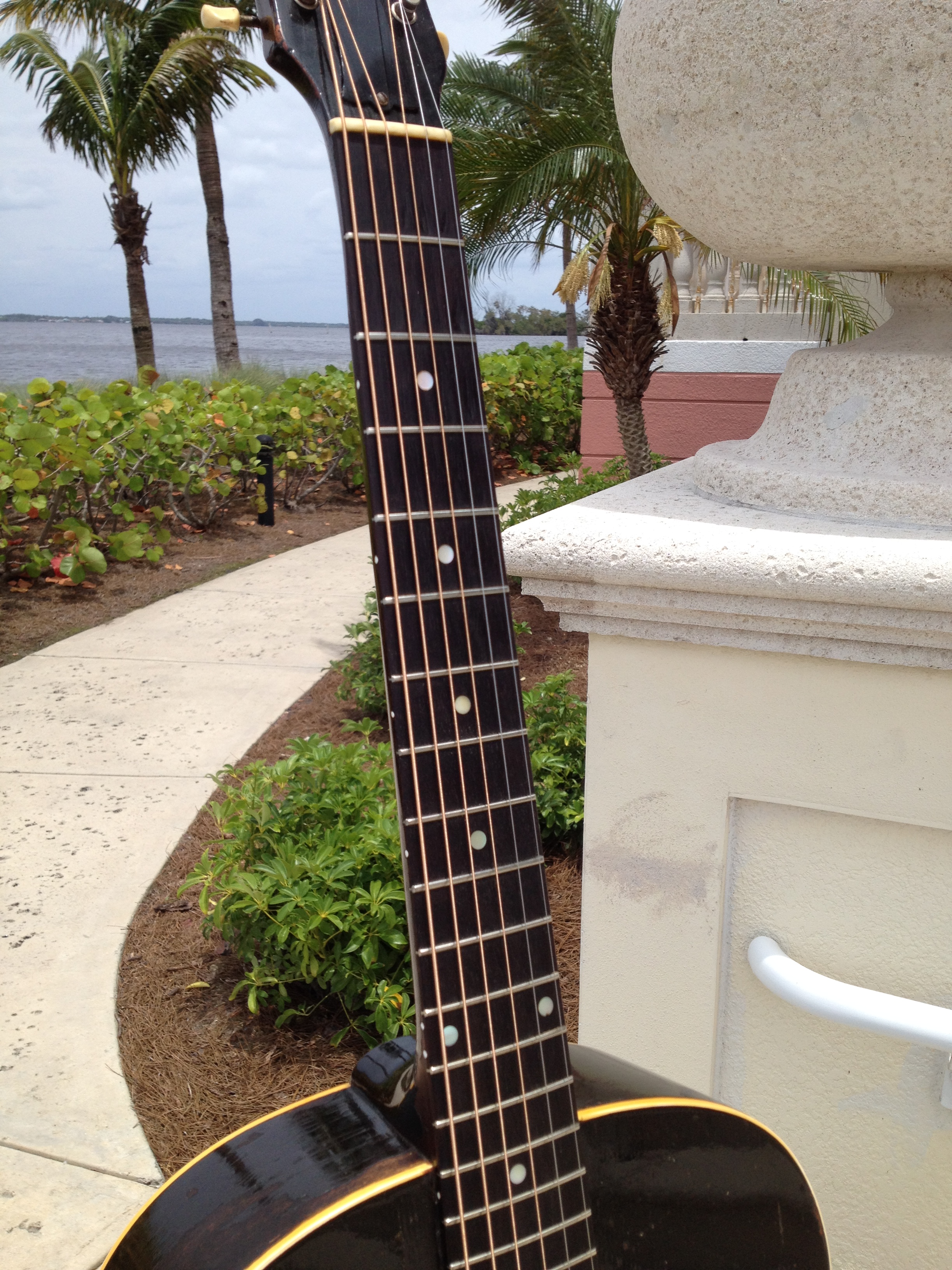 Master luthier, Ross Teigen of Naples Florida painstakingly re glued every brace and tone bar, re set the neck, fabricated a new bone saddle, replaced every fret, re glued the pick guard and cleaned up some old top cracks. The tuners are original and Ross cleaned them and they remain fully functional. The bridge pins are replacement Antique Acoustics replica Gibson pins from Willi Henkes of Germany. No refinish was performed; the top was just buffed out. This guitar is considered original with a proper functional restoration comparable to belt and hose replacements on a vintage car.