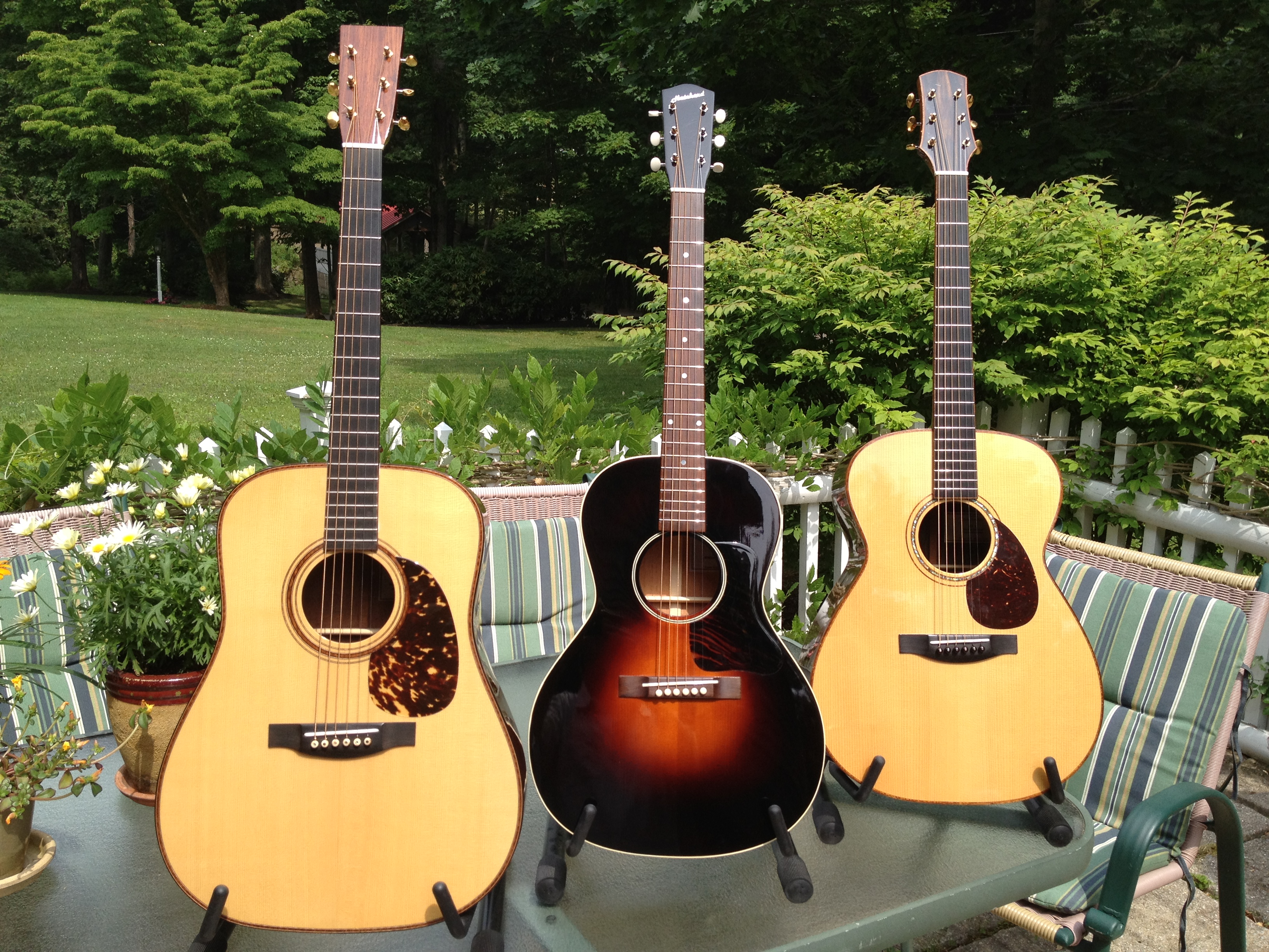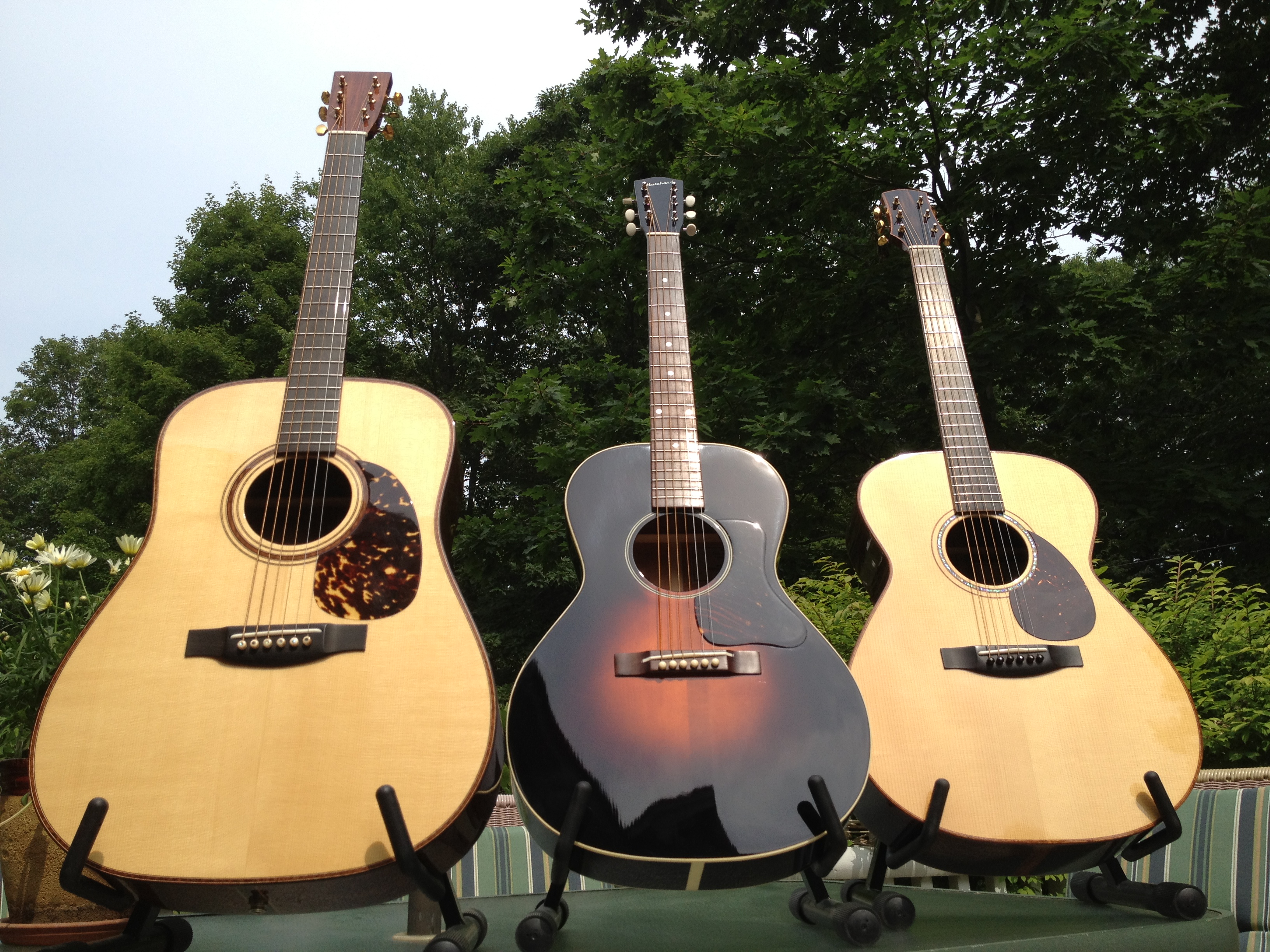 Custom Built Acoustic GuitarsSince taking off on his own in 2006, David has built 25 sensational sounding guitars for the most discerning of players. Varieties include standard and shallow body dreadnoughts, L-00s, 12 string and Baritone guitars along with several Jumbo sized guitars. All builds are of exquisite craftsmanship and finish, select exotic woods and tops, sophisticated style and features rivaling the top semi custom boutique manufactures and independent builders of our time. David’s own design is similar to the Martin 0000 and Bourgeois JOM body size. He considers these a great size for all around finger and flat picking playing styles. |